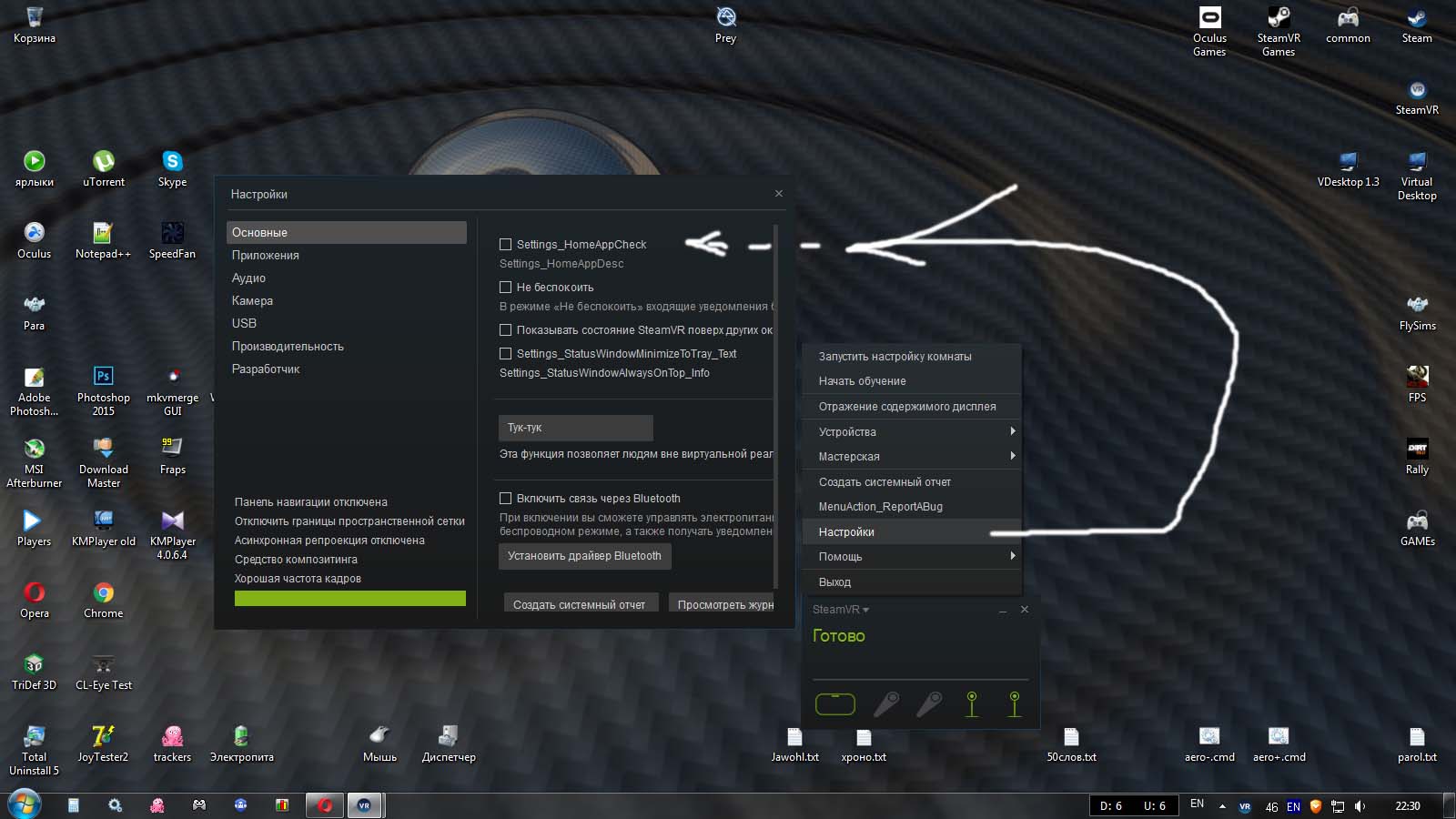=SAE=true_Dentist_32 Опубликовано: 14 июля 2017 Опубликовано: 14 июля 2017 да не,не хом окулуса,а хом в стимВР отключи!!! Untitled-1.jpg Здравия желаю парни.Не найду такого окна у себя в стим вр?