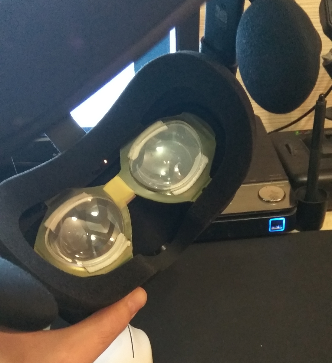 m0n0type Опубликовано: 13 октября 2017 Опубликовано: 13 октября 2017 Имхо это гораздо удобнее очков. Стоит за бугром 70 евро. http://vr-lens-lab.com/lens-adapters/ https://vr-lens.eu/ я сам себе такую штуку смастерил) вырезал из пластика основание (как у них, а можно еще найти в инете файл для 3d печати) и вклеил туда старые линзы от очков..выглядит конечно не так презентабельно, зато работает) ну и цена