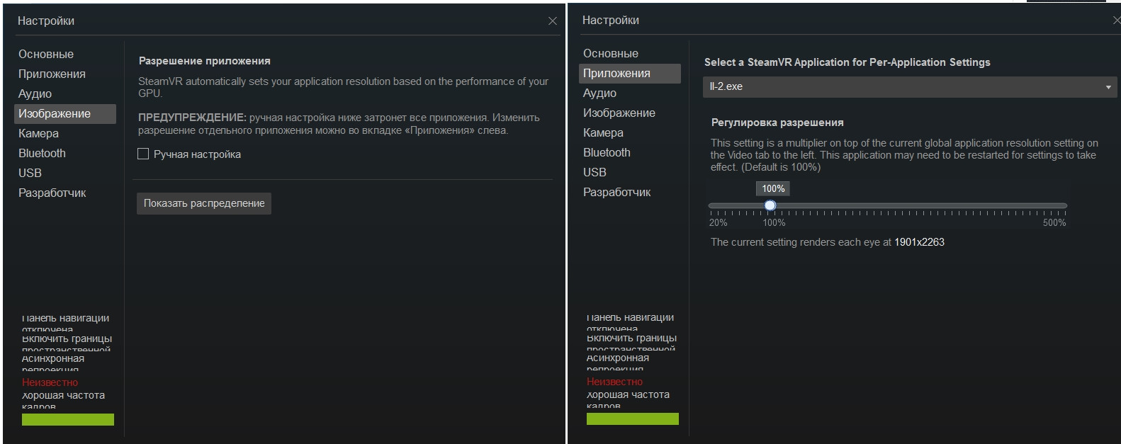 Magenta Опубликовано: 1 сентября 2018 Опубликовано: 1 сентября 2018 (изменено) Для того что бы увидеть текущий апскейл в ODT можно включить Layer HUD Кстати там же можно выбрать перфомансе и просмотреть текущий ФПС я в ODT выставляю в 0, т.е. не выставляю вообще, в SteamVR ставлю где то 170%-180%, мне нравиться Изменено 1 сентября 2018 пользователем Magenta орфография