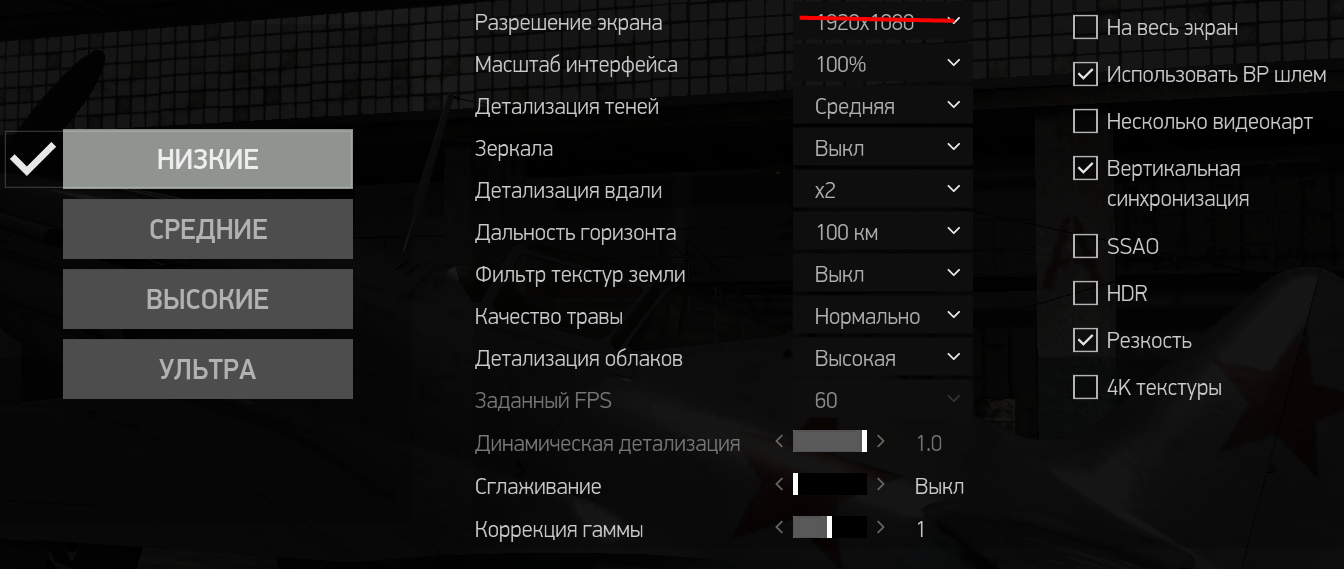 SDV_DecabrisT Опубликовано: 29 августа 2018 Опубликовано: 29 августа 2018 (изменено) 18 часов назад, Magenta сказал: Давайте уже поделимся кто на каких настройках играет с новым патчем, я в принципе летаю вот так, как показатель - FPS в Берлоге в основном от 86 до 89 , т.е вполне комфортно, конфиг компа у меня в подписи Лишний раз убеждаюсь что вся эта возня с апскейлом - это какая-то хрень для самоуспокоения. Плацебо. Извините, по настройкам графики только угадать можно что там. У меня на монитор идет разрешение 640х480. На берлоге 70-90 ФПС... Иногда просадки до 45. Вижу всех в пределах 3 км (при хорошей видимости на карте и до 9 км). В пределах 1-2 км опознаю. На 500 м опознание близко к 100%. Случаются ошибки с самолетами похожими на синих в некоторых ракурсах, ну так то и на мониторе было. Конечно хотелось бы лучше, завидую тем у кого оборудование позволяет. Мой комп к сожалению достиг своего предела, дальше поможет только радикальный апгрейд на современное поколение. ЗЫ: на мониторе в целом у меня было так же. Может у Magenta монитор покруче моего, и он опознает самолеты на 5 км Мне имеющейся видимости достаточно для опознания. Но для комфорта, повторюсь, хотелось бы лучше. Вот, поменял временно разрешение, что бы лучше видно было настройки: ЗЫ: Не понимаю. Как можно летать при низкой детализации облаков... Высокие облака я здесь ни на что не променяю. Пожертвуют дальностью, тенями и т.п. Но облака будут "Высокие" Изменено 29 августа 2018 пользователем SDV_DecabrisT