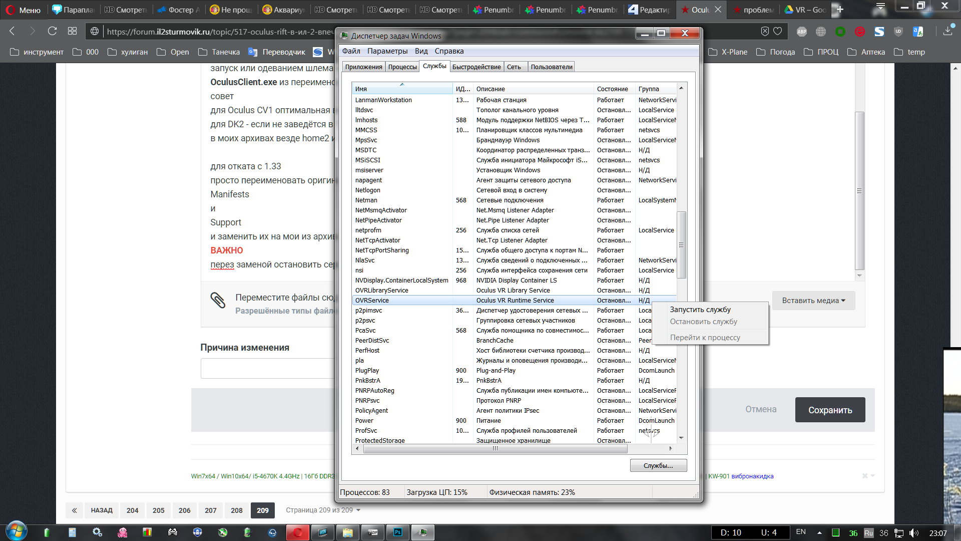 huligan Опубликовано: 6 января 2019 Опубликовано: 6 января 2019 (изменено) 9 часов назад, vitabutch сказал: А есть инструкция https://yadi.sk/d/IiZhzZoc3RZevAhttps://drive.google.c…VZLVjZ4Vm8?usp=sharing и способ установки рантайма вручную. заменить в папке Oculus две папки Manifests и Support создать два пустых txt-файла без расширения(чтобы хом не пытался обновиться) Staging и tmp запустить в cmd две команды(можно через батник) Если не нужен HOME переименовать папку (я её уже переимменовал,чтобы хом не запускался) oculus-client- Если нужно зайти в Хом для настройки,обновления игр или калибровки шлема oculus-client- переименовать в oculus-client запуск или одеванием шлема или принудительноOculusClient.exe из переименованной папки oculus-client совет для Oculus CV1 оптимальная версия софтины 1.30 для DK2 - если не заведётся в 1.30 только тогда пробуем так же предыдущие версии в моих архивах везде home2 и dash удалены,поэтому в настройках в Beta галка c CORE2 должна быть убрана!!! для отката с 1.33 просто переименовать оригинальные папки с 1.33 ManifestsиSupport и заменить их на мои из архива. ВАЖНО перез заменой остановить сервис Окулус в "Службах" или из Диспетчера задач-Службы И после замены опять запустить!!! 17 минут назад, huligan сказал: запустить в cmd две команды(можно через батник) это для установки 1.30 вручную.Для тех,кто не имеет хома установленного запустить в cmd две команды(можно через батник) sc create OVRService binpath= "C:\Program Files\Oculus\Support\oculus-runtime\OVRServiceLauncher.exe" DisplayName= "Oculus VR Runtime и sc create OVRLibraryService binpath= "C:\Program Files\Oculus\Support\oculus-librarian\OVRLibraryService.exe" type= own start= auto Проверить,что в Службах появилось два новых сервиса Oculus VR Runtime Service и OVRLibraryService Изменено 6 января 2019 пользователем huligan 2 1