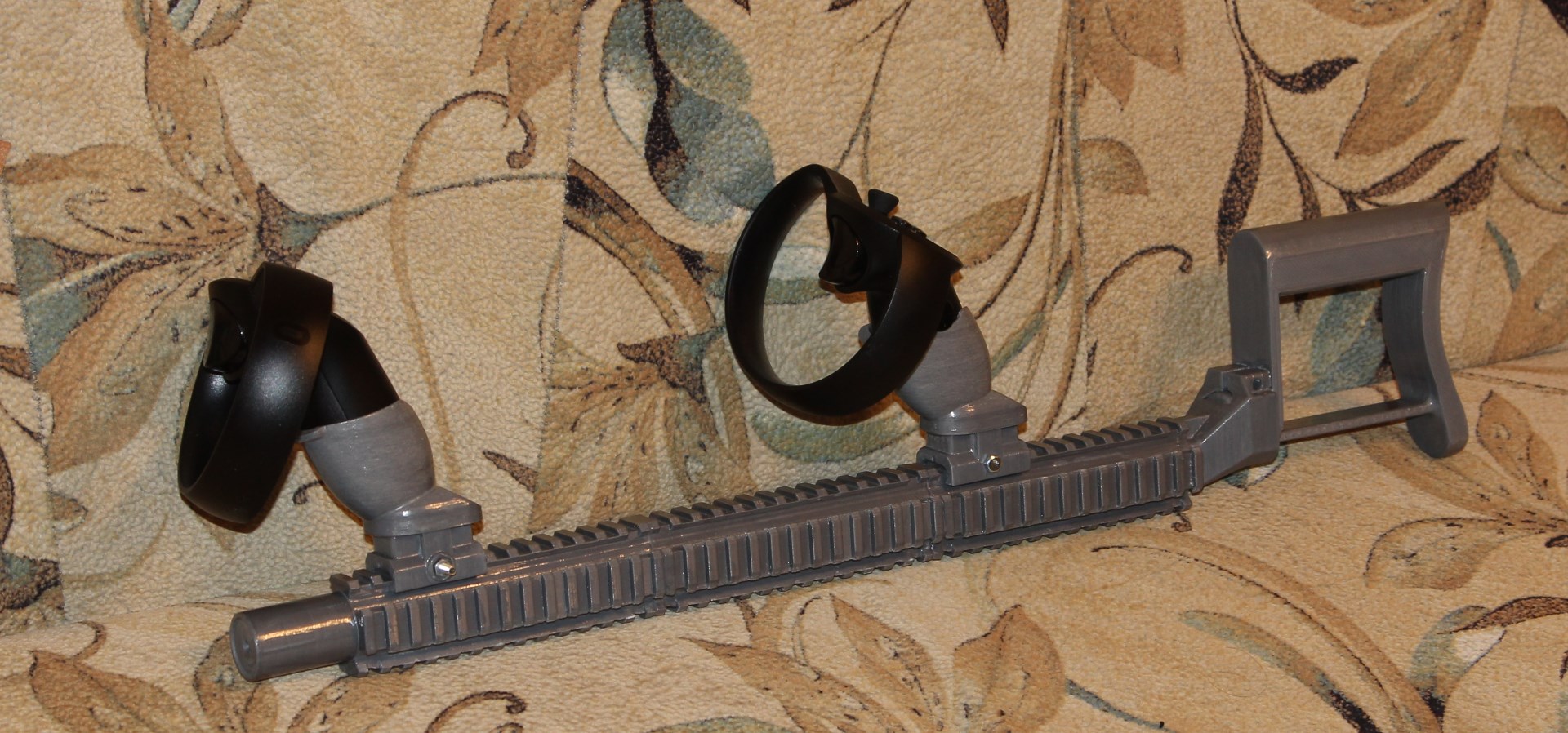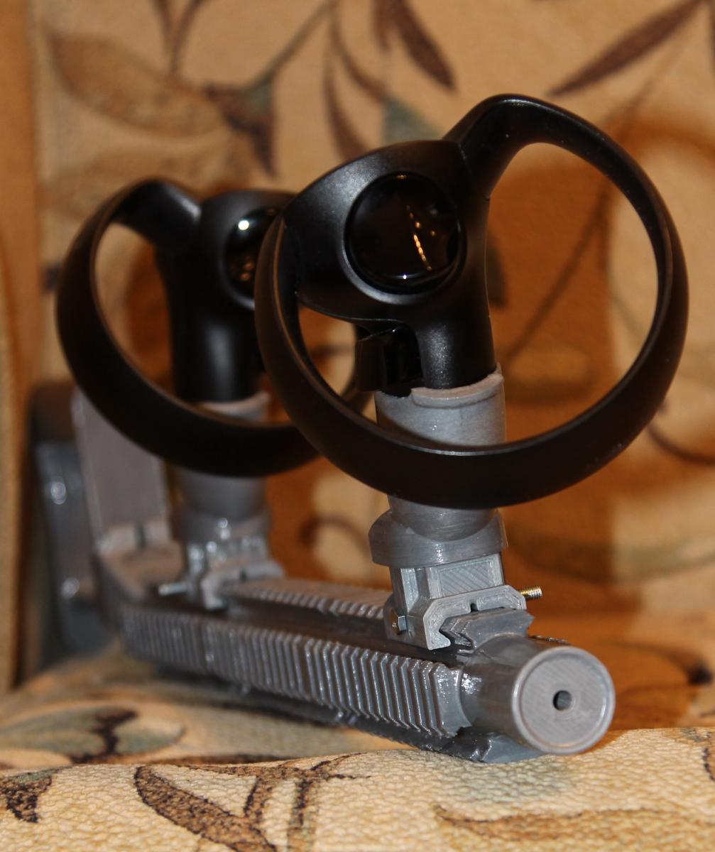 1/SG2_Ganeshka Опубликовано: 15 апреля 2017 Опубликовано: 15 апреля 2017 Off-top. Попробовал немного в Onward и Pavlov VR. Очень хорошо для удержания оружия и прицеливания. Приклад в целом на месте. Держатели контроллеров хорошенько отшкурил изнутри и обработал дихлорметаном - так вынимаются и вставляются легко. Предохранительные петли пришлось снять - мешаются. В общем - для любителей VR-шутеров штука весьма полезная. Конструкцию дополнил имитацией глушителя, типа как на фото: А то стандартная конструкция заканчивается квадратной деталью с маленькой площадью, которой легко что-нибудь расколотить при неосторожном движении. Если кому-то нужно - "глушитель" можно скачать здесь - https://tinkercad.com/things/7TjjHyfFH2P Дико извиняюсь, но просто нет свободного времени. А кроме удержания, доставать и вставлять? И прочее, удобно ?