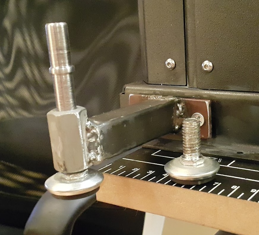 vitabutch Опубликовано: 18 июня 2017 Опубликовано: 18 июня 2017 (изменено) А что это за паук.. Самостоятельно делал под расстояние между колесами? Да. После того, как все сделал, предложил идею Бауру, чтобы, может, он сделал фабричные комплекты под такие крепления, причем их можно сделать раздвигающимися, чтобы подстраивать под разные кресла. Но, к сожалению, Баура эта идея не заинтересовала. Но, может, он занят работой с уже готовыми устройствами, ибо как я вижу на форуме игры из трех букв, там пошла массовая поставка напольников в США. В общем, вот, что сделал я. Сначала замеряем расстояние между ножками паука кресла Потом из подходящего болта точим шпильку Затем колхозим кронштейн из высокой гайки, куска квадратной трубы и полоски металла. Винт-ножка покупная из Леруа Ну и присверливаем кронштейн в боковине напольника. Вверх-вниз он не ходит, ибо прижат массой кресла. Собственно все. Изменено 18 июня 2017 пользователем vitabutch