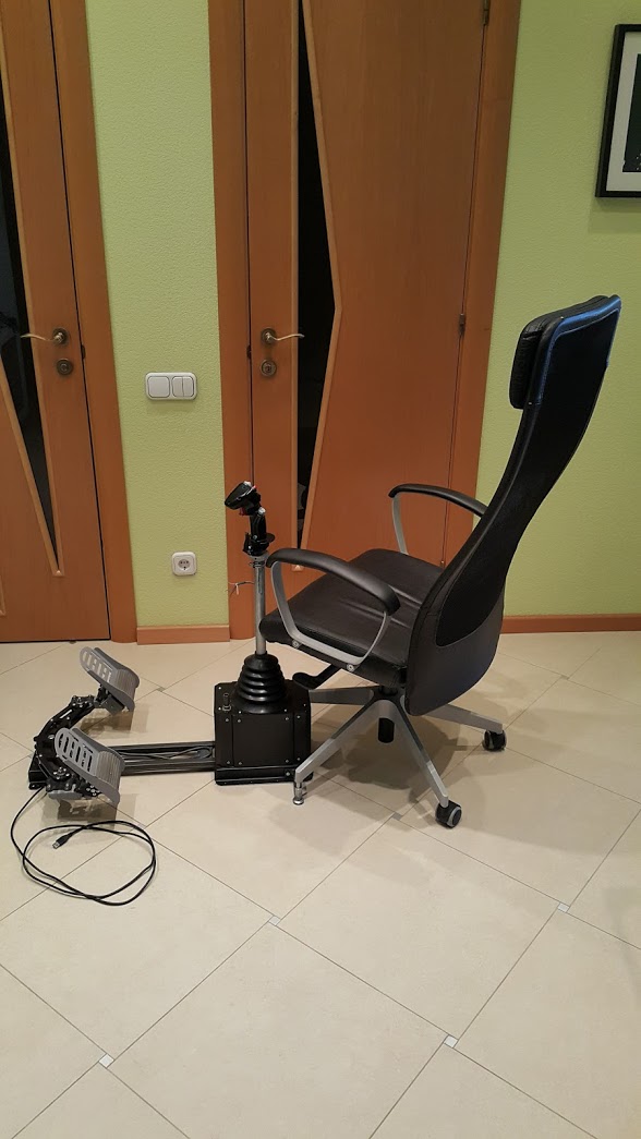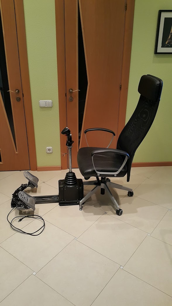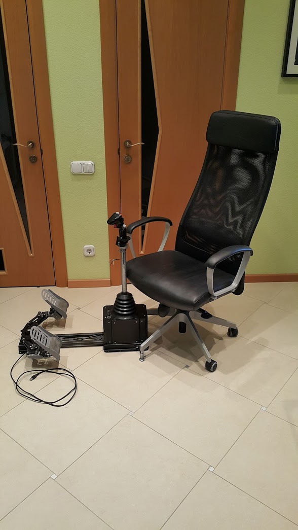 vitabutch Опубликовано: 18 июня 2017 Опубликовано: 18 июня 2017 (изменено) Ага. Надо. Я как раз в поиске своего кокпита.. Старое кресло развалилось, вот думаю что взять. Думал над креслами для автосимов, но боюсь там сильно неудобно на 6 будет смотреть. Вот моя конструкция. Так она выглядит сама по себе. Торчащие провода под рукояткой - заготовка под рычаг тормоза колес. Все руки не дойдут доделать. Расстояние между РУСом и педалями фиксировано и настроено под себя. В принципе, можно было сделать регулируемым, но я не стал заморачиваться. Дальше берется обычное Икеевское кресло, и у него снимаются два колеса (руками они выдергиваются за 5 секунд) Вместо колес паук надевается на соответствующие ответки в в РУСе. Все, система в сборе и можно летать И поворачиваться вправо И влево. При отклоненной на себя РУС, углы поворота не ограничиваются, ручка немного продавливает мягкую сидушку Главное, повторюсь, правильно выбрать расстояние до педалей, высоту посадки и угол наклона площадок под ступни. Тогда мегаудобно и при педалировании вообще кресло не двигается, дискофорта нет. Можно даже снять ноги с педалей и поставить на пол, чтобы не было усталости. Разбирается конструкция также за 2 минуты в обратной последовательности Ну и электронная начинка самопальная на базе Mmjoy2? Arduino и датчиков TLE. Можно было сделать и аккуратнее, но я торопился полетать. Работает, так и оставил ну я о себе говорю, у меня были сняты колеса и кресло не ездило , а было фиксировано .В принципе можно считать что был только механизм качания и поворотный.Лично мне так было не удобно, особенно если резко начинаешь осматриваться. Если начать крутиться и осматриваться, что на фиксированном кресле, что на крутящемся все равно самолет будет телепать. Даже не из-за педалей, а потому, что РУС тоже сложно будет не дергать при этом. Возможно, ручки, как в реальном самолете помогли бы, но я отставил идею кокпита после покупки VR, и поэтому сделал себе вышеуказанное устройство. Для VR мне сложно придумать что-то более удобное, судя по почти полугодовому уже опыту использования. Кстати еще комментарий. Чем более "лежачая" посадка, тем сложнее будет посмотреть назад. Советую вертикальную посадку, как на обычном стуле. Изменено 18 июня 2017 пользователем vitabutch 3