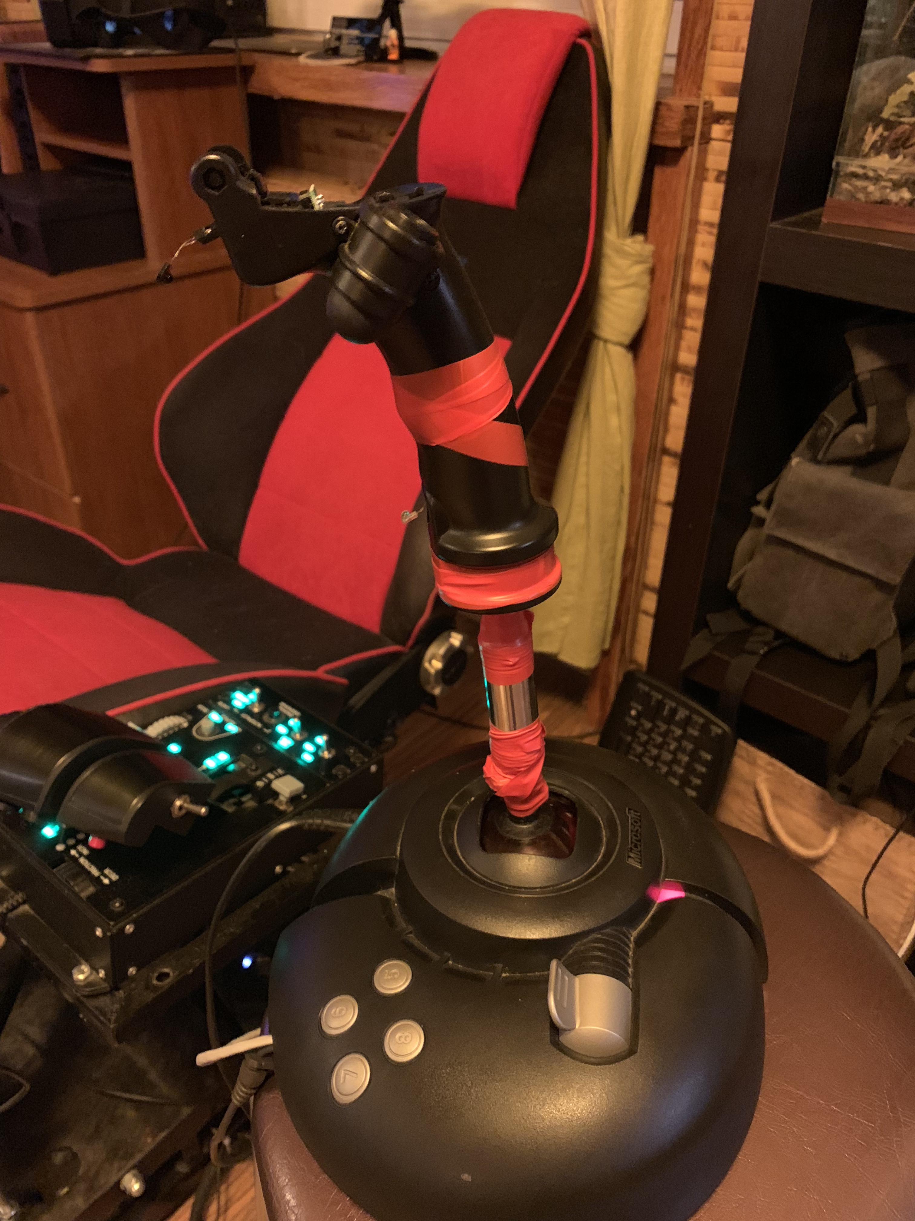 Sharky42 Опубликовано: 28 июня 2019 Автор Опубликовано: 28 июня 2019 2 hours ago, Vumpel18 said: Если хочется иметь возможность использования сменных ручек от VKB тогда нужно использовать один из контроллеров: - BlackBox_v1_6; - NJoy32 v_2_1; - NJoy32 v_1_0; - NJoy32 v_1_1; - NJoy32 v_1_2. Найти перечисленные становиться всё труднее и труднее. Все перечисленное обязывает к изготовлению нового корпуса. Колхозить коробку под базой с кулером не имеет смысла. Ничего там не греется после у Фотоэлемент выключения загрузки механики на отдельной плате (установлена в ручке) можно перебросить на тумблер. С удлинителем проблем не возникнет, кроме одного - механического соединения установочного штока ручки KG12 с родным штоком MSFF2. Спасибо! Насчет корпуса осознал. Два вопроса - почему нельзя использовать ручки ВКБ с контроллером от гладиатора про 2 и нужны ли на этот контроллер заглушки в те слоты, которые предназначены для плат с кнопками и энкодерами? То же интересует относительно родной ручки ффб - надо сохранять всю ее начинку или только плату, к которой припаяны провода от фотоэлемента?