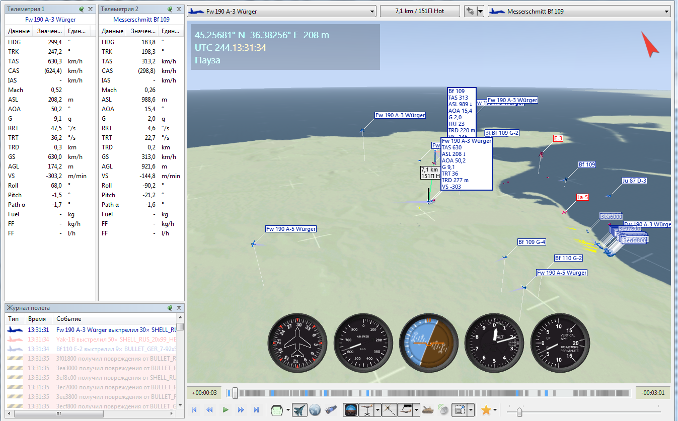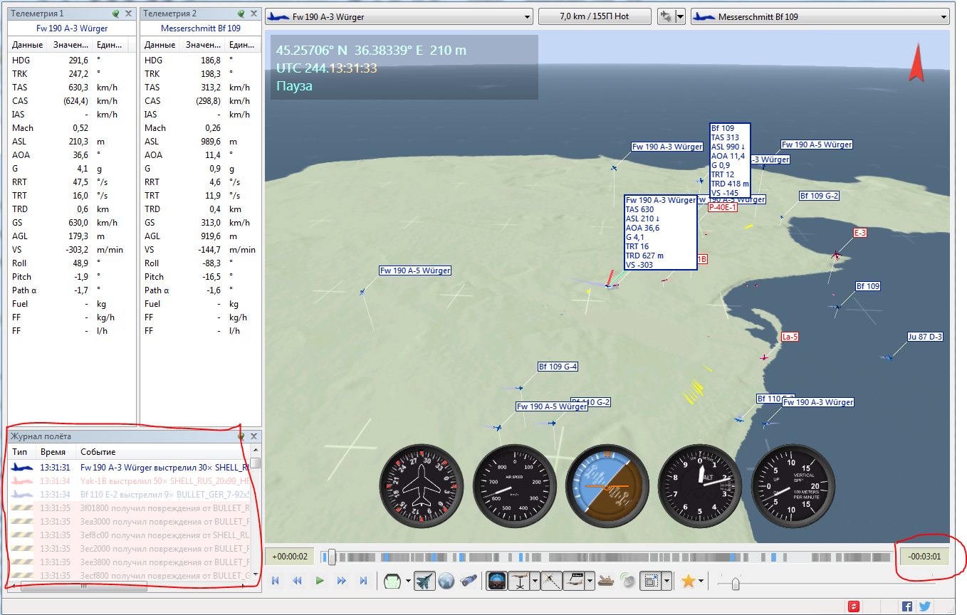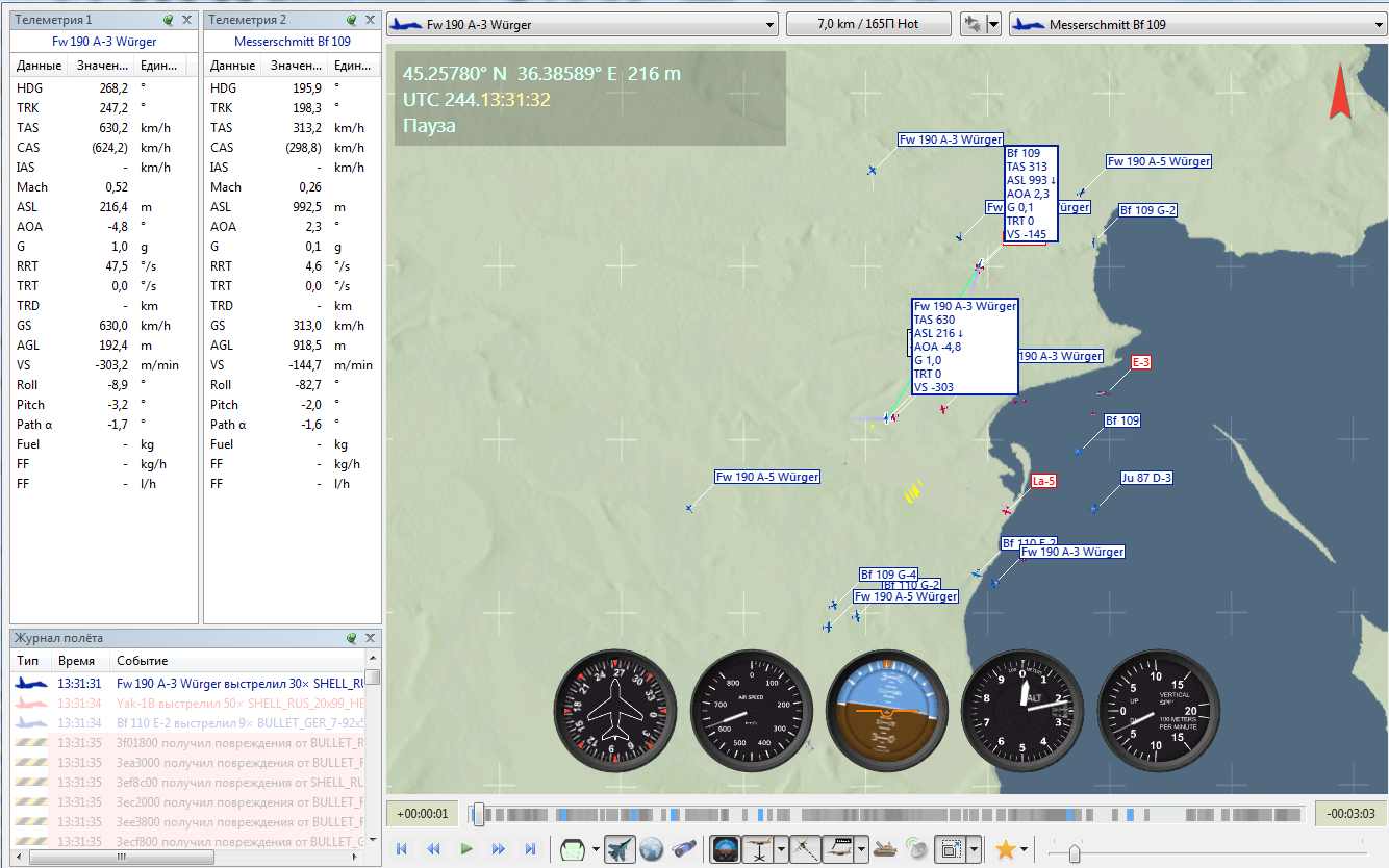 ZZAAMM Опубликовано: 29 августа 2019 Опубликовано: 29 августа 2019 28.08.2019 в 02:06, DeadlyMercury сказал: Эксперименты с кругом завели меня еще дальше: Это - идеальный круг от автопилота. Скорость постоянная, радиус постоянный, ветер ноль. (по данным того же трека; 0.5 - погрешность определения угловой скорости) Я теперь просто железно уверен, что перевод из географических координат сделан с ошибкой. Все эти волны четко привязаны к сторонам света. DeadlyMercury, можно ещё пару вопросов по таквью и данных игры? Вы говорили, что данные для таквью игра записывает каждые 0,2 секунды. Вот данные Первичной телеметрии Таквью: Скрытый текст Так вот: между скринами 0,11с и разные данные по первичной телеметрии. Это как происходит? Что может считывать таквью? И еще вопрос. Открыл ролик Таквью в Excel, удалил все данные координат и углов, кроме одного индификатора самолёта, с#0.20с по#0,30 с включительно, кроме первой записи по времени # 0,00 сек. Сохранил в том же расширении что и было, ролик изменил размер. Скрытый текст Запускаю в Таквью, а там летают все самолёты как будто ни чего не произошло. С данными телеметрии, стрельбой, и т.д. Это как, откуда данные берутся если я все стер? Скрытый текст
