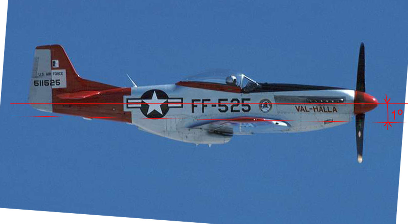 1CGS =FB=VikS Опубликовано: 1 октября 2019 1CGS Опубликовано: 1 октября 2019 2 часа назад, Araks сказал: Крайняя нервюра смотрит вверх на 1 градус. А должна на 1 градус вниз. если точнее - то -0,85: ну а по факту вы упустили одну важную деталь - на P-51D ось винта (Trust line) отклонена вниз на -1,45 относительно СГФ фюзеляжа: и если с учетом всего этого, посмотреть на модель (например во вьювере) без искажений, то: 1 1