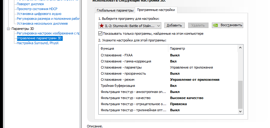 анизотропия наоборот делает контакты четкими и красивыми. Раньше играл со сглаживанием управляемым от приложения, так как работало "сглаживание-прозрачность", но после патча, увеличившего дальность горизонта, сглаживание-прозрачность мылит картинку при любых настройках, поломалось в общем. Потому параметр 8 с замещением настроек приложения, практически устраняет черные и иные некрасивые царапины на стекле фонаря кабины.