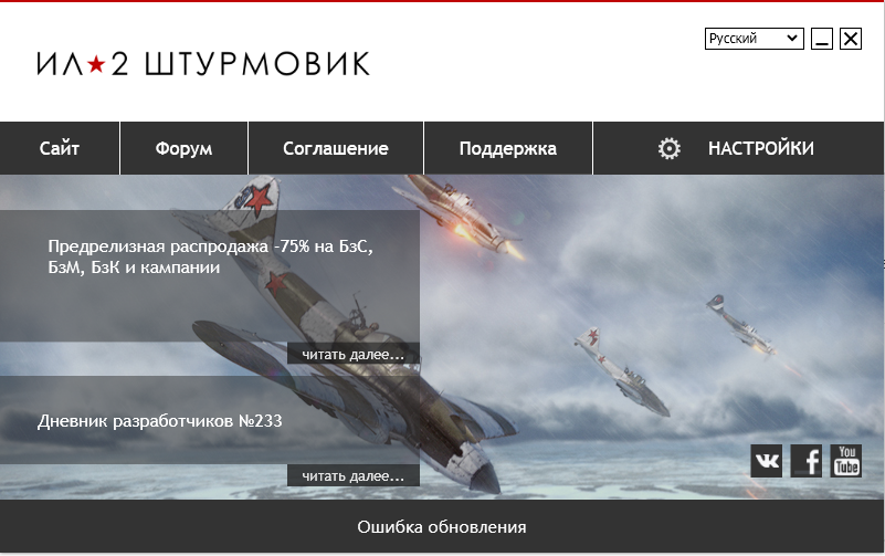 Botanik Опубликовано: 23 октября 2019 Опубликовано: 23 октября 2019 Решил проблему. - удалил папки updater (в data) и updates - скачал заново и переустановил лаунчер (IL2_setup_Great_Battles.exe) - при запуске лаунчер перепроверил файлы и запустил игру. (без удаления папок ошибка оставалась)