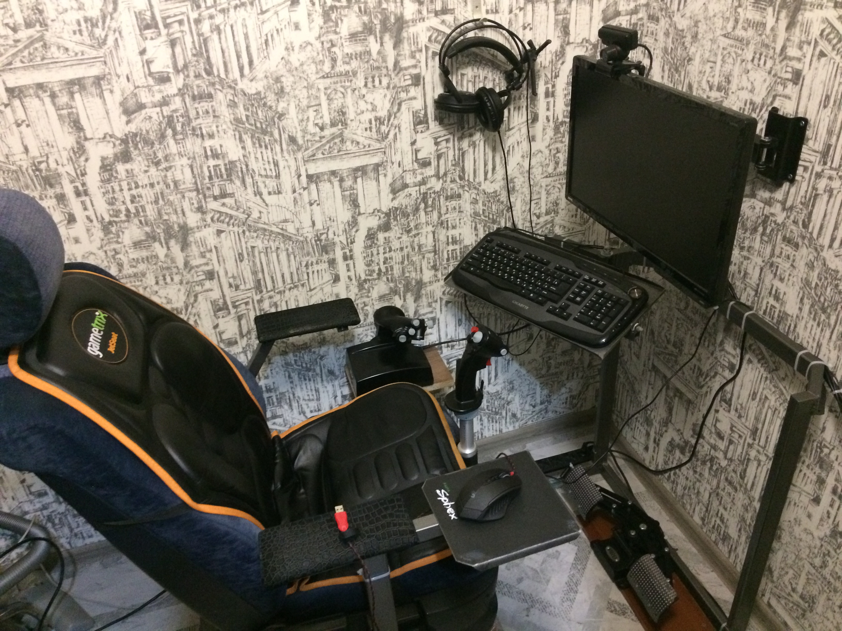 =BULAT=PAPasha Опубликовано: 27 октября 2019 Опубликовано: 27 октября 2019 1 час назад, MARK_II сказал: У меня педали стоял на деревянных "рельсах", на которых есть поперечная перекладина, за которую я закидываю колесо кресла и оно перестает кататься по комнате. 1 час назад, Yarun_RUS сказал: Что за глупость! Вам дорого купить 5 колёсиков с тормозами на кресло??? Ну если вам норм, то я не против. Всё ваши действия не исключают того, что кресло крутится вокруг своей оси. У меня от этого просто спина заболела, тк напряжена была... В итоге я пришёл к этому, потеряв в универсальности: Когда летаешь в авиасимы - круто. Когда делаешь все остальное - так себе.) Потому и говорю, что "топтуны" это хороший вариант для использования с компьютерным столом, креслом на колёсиках и т.д. Они более эргономичный и менее требовательны к организации места вирпила. 2