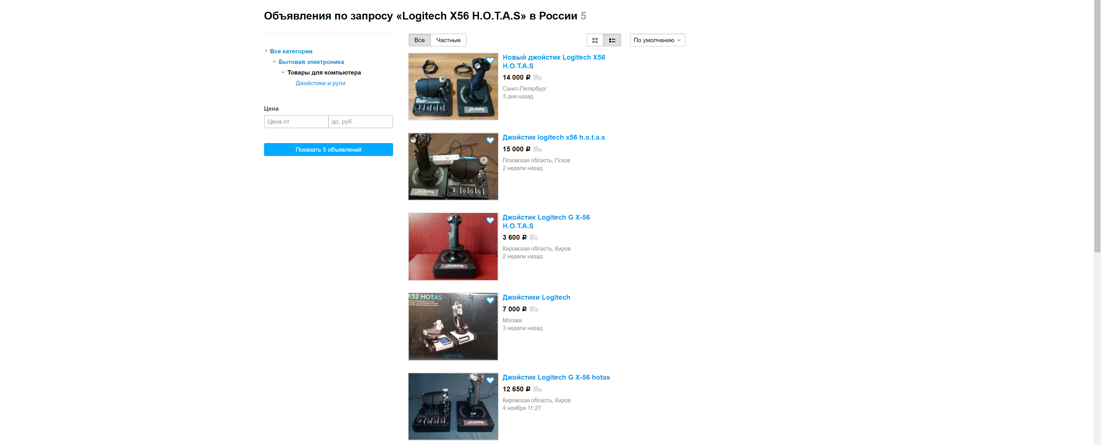 ABP_158 Опубликовано: 3 декабря 2019 Опубликовано: 3 декабря 2019 13 минут назад, a___k___s сказал: не, там бывают и лучше, недавно нулёвый красноглазый был ) Андрей привет.Вот здесь бывают бюджетные,но надо постоянно мониторить,разметают моментально,видимо наши? https://sendle.ru/search?controller=search&orderby=position&orderway=desc&id_category=all&search_query=Microsoft+Sidewinder+Force+Feedback 1