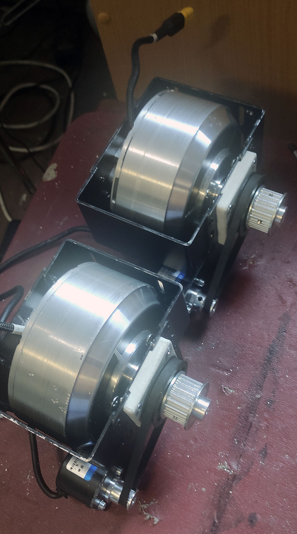 Magenta Опубликовано: 29 сентября 2022 Опубликовано: 29 сентября 2022 (изменено) Пока из Китая идет новый (взамен убитого) контроллер (ODrive), решил поработать над ошибками 1. Переточил Фланцы на двигатели, базовая ось на 8мм оказалась хлипковата , переделал на 16мм, непонятный люминевый сплав (скорее всего АМ2) заменил на "честный" Д16T Ну и нижнюю шестерню то же заменил с 14 зубовой на 20 зубовую, соответственно пришлось перепечатать и шестерню на передачу энкодера Ну пока результат вот такой - два блока двигателей в сборе Изменено 29 сентября 2022 пользователем Magenta 3