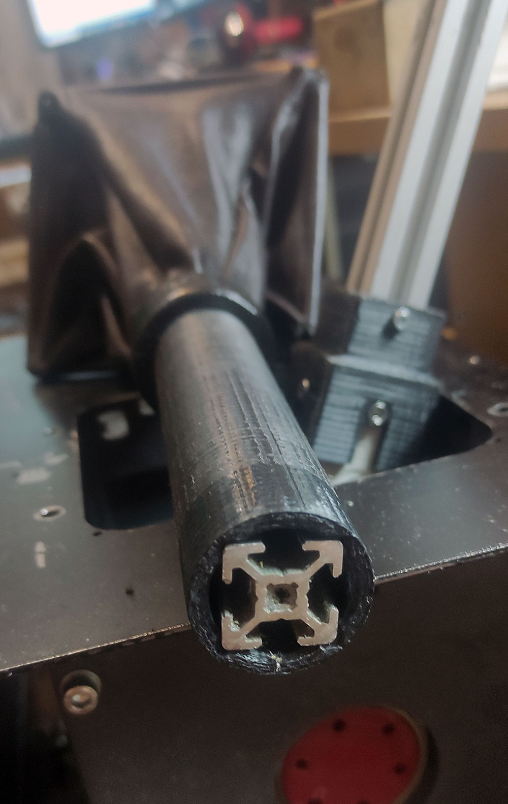 Magenta Опубликовано: 29 сентября 2022 Опубликовано: 29 сентября 2022 Ещё доработки, если кому не нравиться конструкционный профиль в качестве штока, то печатем чехол на шток (потом ещё термоусадку сверху посажу), я печатал SBS-ом, так как данный пластик толерантен к ударам и изгибам (т.е. он такой, ни как флекс конечно, но мягенький ) Ну и заодно сшил из козьей кожи пыльник ...