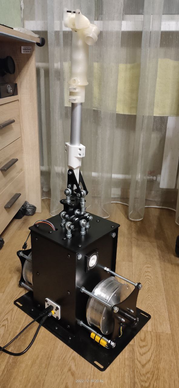 AndyBP Опубликовано: 21 декабря 2022 Опубликовано: 21 декабря 2022 18.12.2022 в 00:27, AndyBP сказал: Собрал-таки. И буду разбирать :). Углы отклонения несимметричные получились, явно я что-то накосячил с длинами тяг. Но это мелочи. Нет реакции на изменение настроек в приложении, ни на эффекты, ни даже на "галочку" инверсии для осей. Хотя моторы явно работают, но как будто выдают только эффект dumping'а - просто тяжело ворочать ручкой. Подскажите, куда копать. Вот я балбес. Но не безнадёжный :). Всего десять минут раздумий с момента, как я осознал, что ручку тянет по диагонали, когда я её отклоняю строго в сторону, и наиболее вероятную причину я определил - контроллер не знает, куда крутить моторы. Так и оказалось: перепутал каналы датчиков. После исправления пружина стала пружиной :). Заказал подшипники - совершенно точно мне захочется что-нибудь сделать с люфтами. И алюминиевые большие шкивы. 7