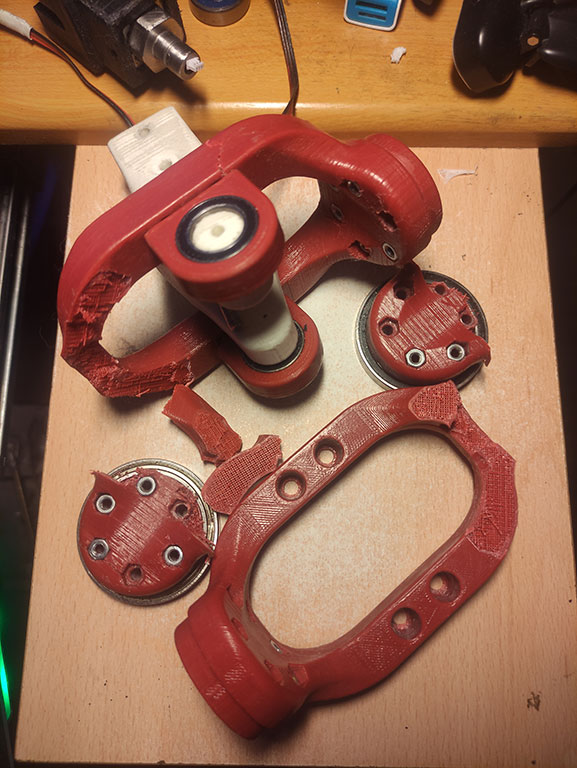Magenta Опубликовано: 25 декабря 2022 Опубликовано: 25 декабря 2022 ... И шутки у вас дурацкие (с) Это я так от расстройства, начал мерять тягу, выкрутил мощь на максимум, и расхерачил свой пластиковый гимбл начисто, перед крашем показал что то около 6 кг, а летал я оказыается, и вполне комфортно, где то при 2.5-2.8кг Сейчас пока перепечатываю усиленную версию (что бы хоть на новогодние полетать) , но дальше видимо буду делать всё же железный механизм Скрытый текст 3