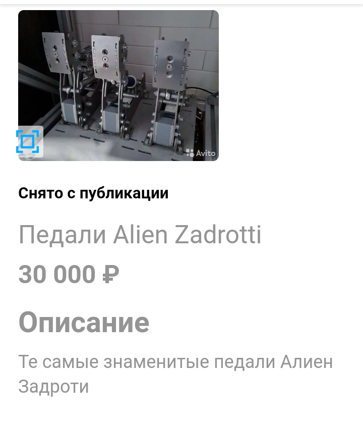 Antony99 Опубликовано: 19 января 2022 Опубликовано: 19 января 2022 1 минуту назад, Rokman сказал: Комплект РУС+РУД в Эльдорадо,ДНС и МВидео 35 тыс новый.Педали от 3 тыс на Авито. какие педали 3тыщ, ты внимательно то посмотри что там за педали