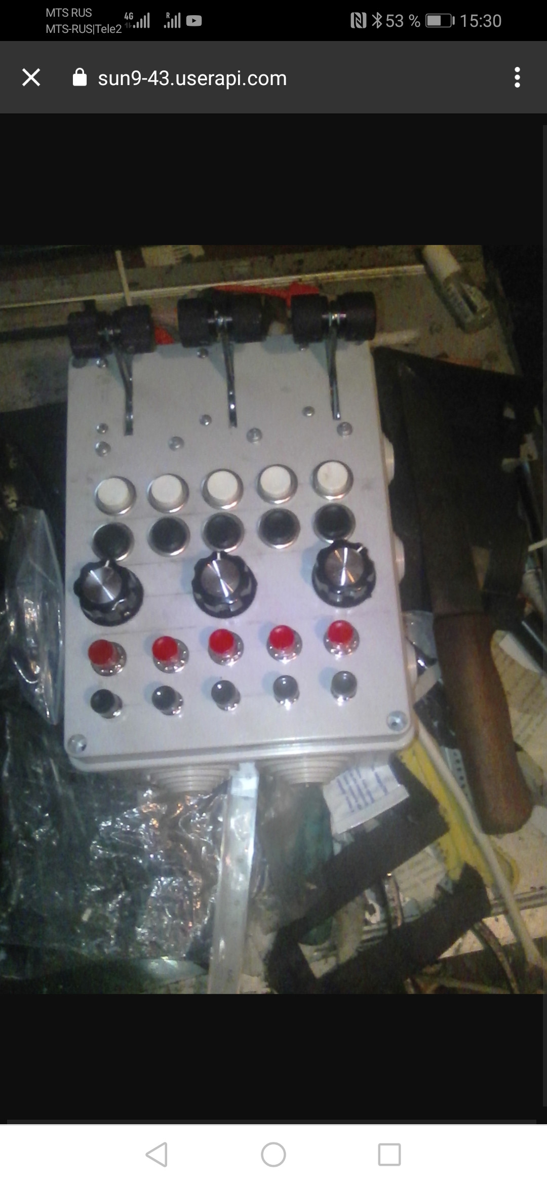 Kill_Em_All Опубликовано: 21 января 2020 Опубликовано: 21 января 2020 19.01.2020 в 22:00, =SF=ULRICH сказал: Блок с кнопочками 5.000 ( Делал хороший Человек с руками из правильного места) Это тот, что серый слева? 6 осей, как я понял? 20 кнопок или среди кнопок есть тумблеры? (на фото не видно) Оси на рычагах на бесконтактах? Что за контроллер стоит? Резерв до выяснения.