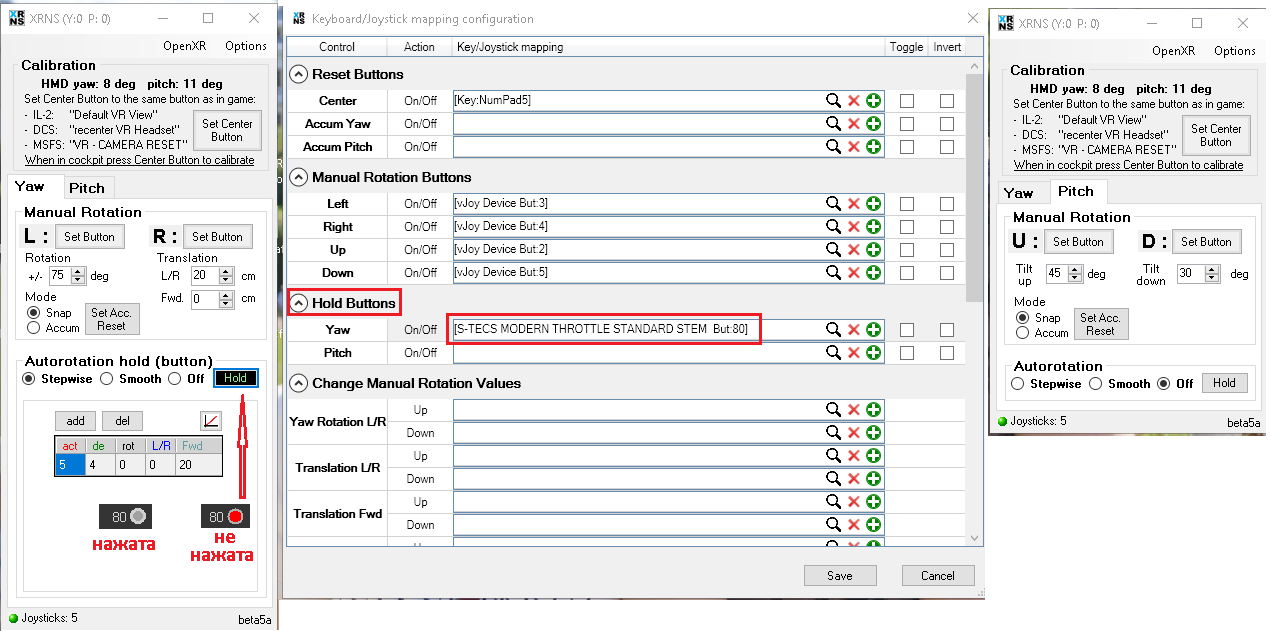 72AG_Olega Опубликовано: 1 декабря 2024 Опубликовано: 1 декабря 2024 Парни! Сегодня заморочился сделать в VR себе "Приближение к прицелу" как в старичке. Вроде получилось. Я использую довороты по кнопкам + теперь добавилось приближение к прицелу. Особенно удобно стало на Миг-3! (у него пилот далеко от прицела сидит). Скриншот прикрепляю. Суть: передняя зона шириной в 10 градусов используется как граница переключения, - внутри неё нет приближения, вне её +20 см вперед смещение пилота. Чтобы срабатывание было когда мне нужно, назначаю кнопку на Hold(заморозка). Кнопка должна быть обратного действия, т.е. если она не нажата, то она включена, если нажата, то выключена. (у меня ГФ4, там это сделать не сложно). Небольшим поворотом головы (а при слежении за целью в вираже даже и поворачивать дополнительно не нужно и так > 5 градусов получается) и нажатием кнопки я включаю приближение к прицелу, кнопку тут же отпускаю и положение FW=+20см фиксируется - видны все кольца! Чтобы вернуться в обычное положение ставлю голову прямо и жмакаю эту же кнопу, а затем отпускаю. Сегодня на миге опробовал, - понравилось. Единственный нюанс, вернуться в обычное по FW положение можно только в этой зоне и кратко нажатой кнопке (но я практически привык за один вылет против 10 ботов, появляющихся последовательно). 2