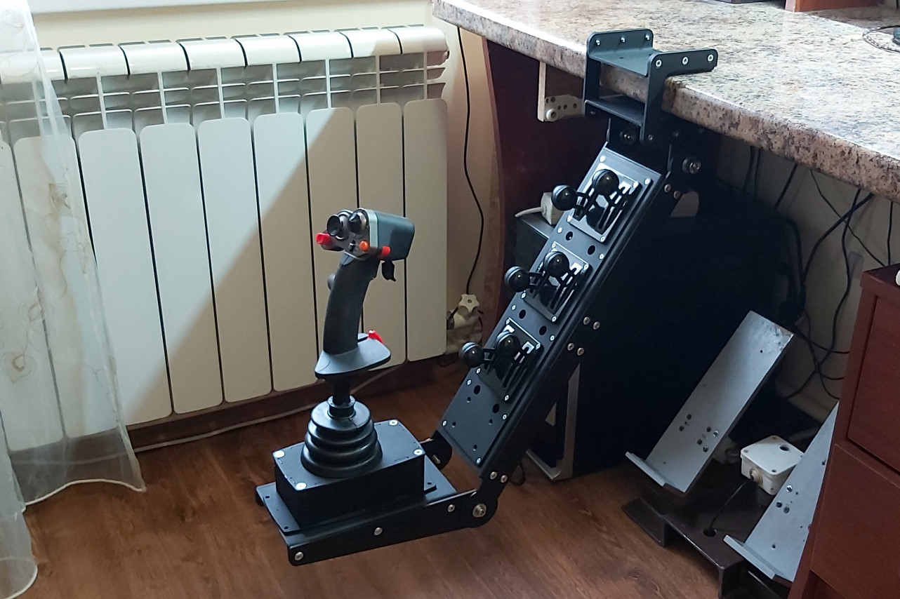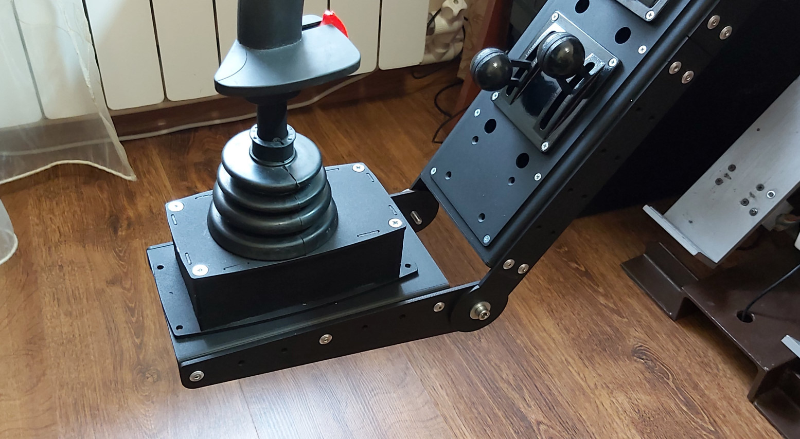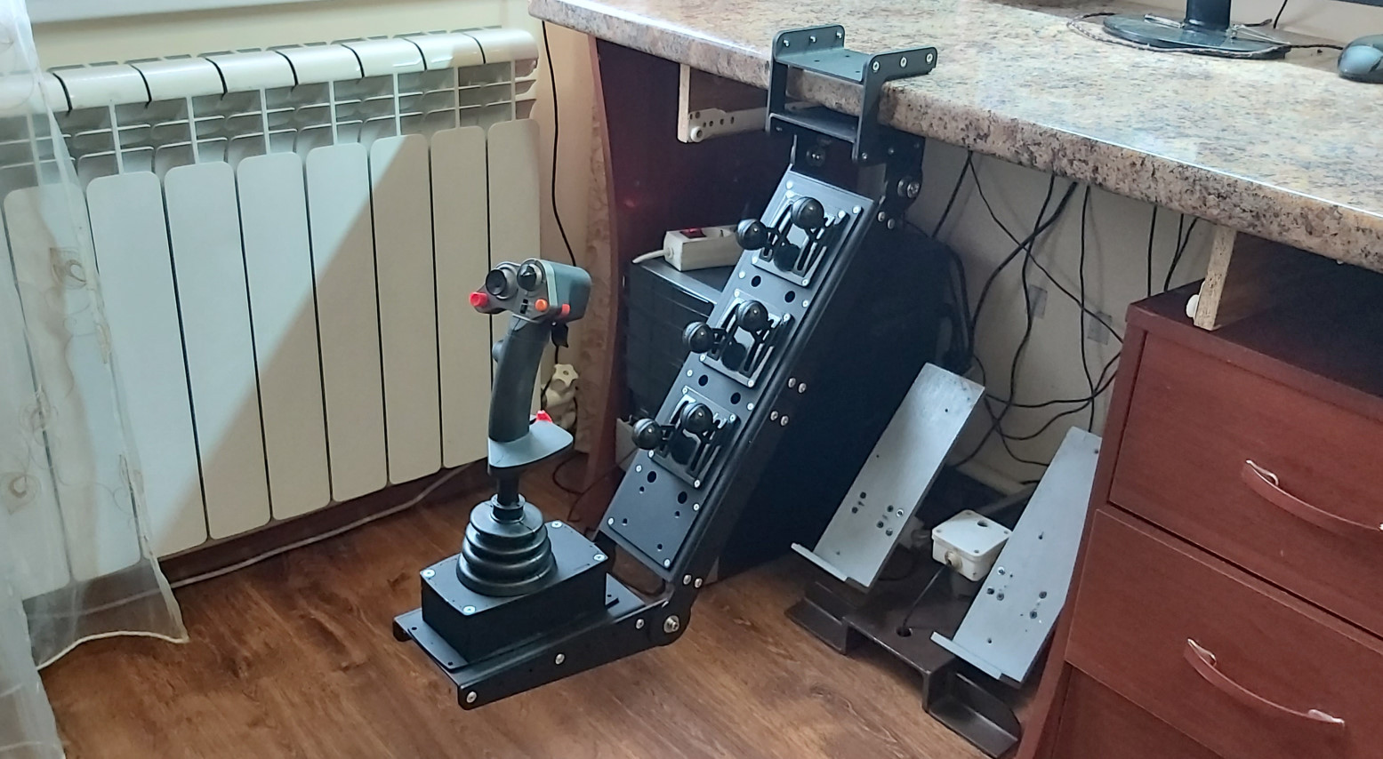 MYCYJIbMAHUH Опубликовано: 24 марта 2020 Автор Опубликовано: 24 марта 2020 (изменено) Новое предложение.Рус за 6000 руб. Установил на механику два датчика TLE 5010.Ардуина на произвольном шильде(монтажная плата 40*60мм).Прилагается адаптер 150 мм,при установке высота рус будет 450мм ,прОвода из ручки хватает с запасом.Ручка снимается за две-три минуты.Поднимаем пыльник и выкручиваем из адаптера четыре винта м-3, разъединяем разъём и снимаем ручку с адаптером со штока механики.Твист у ручки заглушен винтом м-3.Резистор на оси рыскания отпаян.В ручку вмонтирован резистор 10КоМ под большой палец.На борту ручки 29 кнопок с шифтом включительно.В боковой панели есть отверстие 16 мм для монтажа авиационного разъёма для подключения трёхосных педалей руда или квадранта на пять осей.Но в отверстие подойдёт только разъём 8 pin,как раз только на три оси. Изменено 24 марта 2020 пользователем MYCYJIbMAHUH 2
