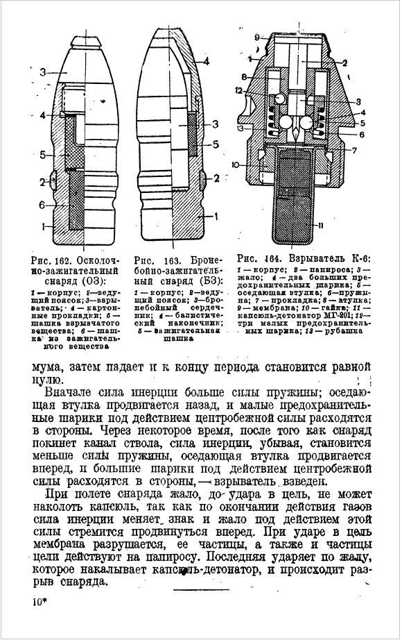 Книга 43 года, "20-мм пушка ШВАК. Устройство, эксплоатация и ремонт", страница 150, рис 162,  пункты 5, 6 - ОЗ снаряд - навеска из ВВ и зажигательного состава: