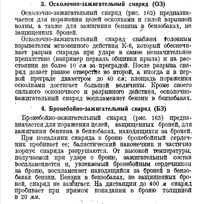 Действительно, там там дается только общее описание конструкции снаряда, не указывается ни тип ВВ ни его кол-во, только вес порохового заряда. Но что меня больше удивило, что там ни чего не пишут про ОЗТ (осколочно-зажигательно -трассирующий) получается в 1942 г. не было трассирующих снарядов для ШВАК? В набивке лент помимо ОЗ и БЗ были другие, чисто трассирующие снаряды? Непонятный момент.