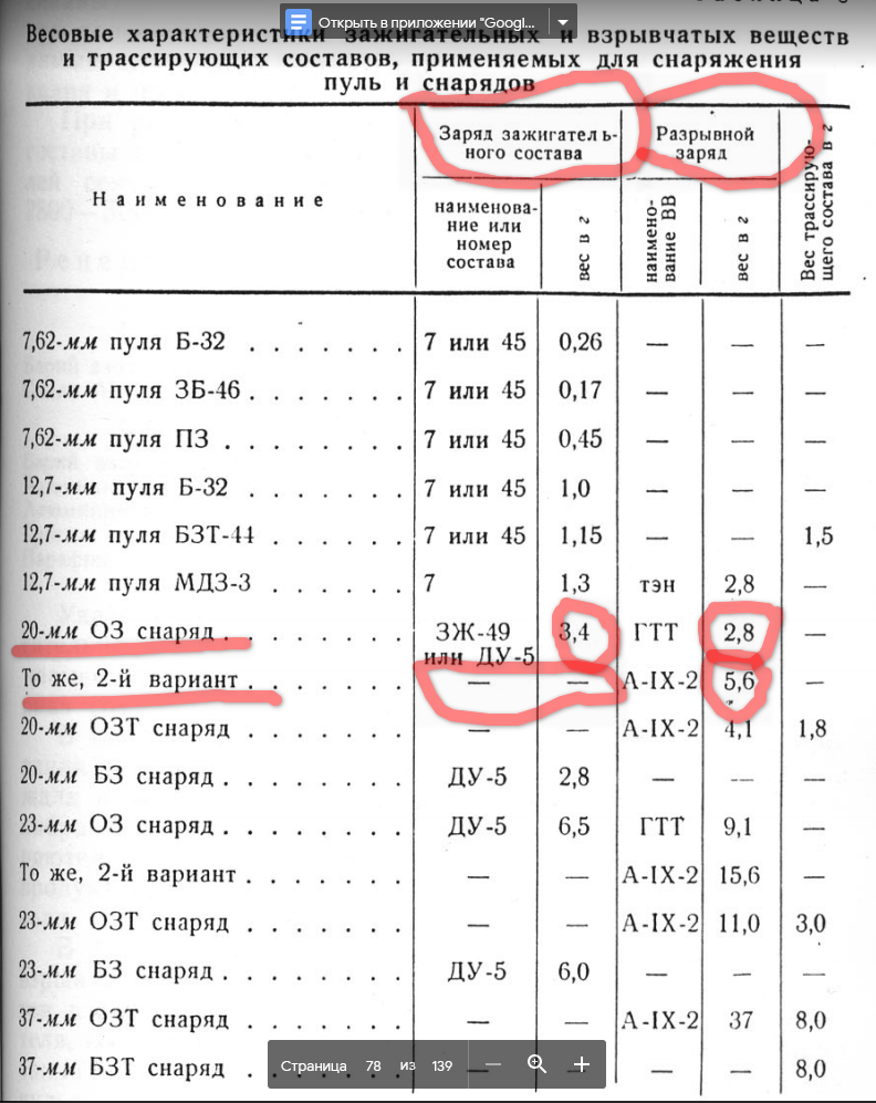 Да там уже сова порвалась и глобус съежился, в загрузке 2 шашки ВВ никаких "зажигательных" зарядов нет, в графе заряд зажигательного состава прочерк, вот данные из того же документа , страница 78: