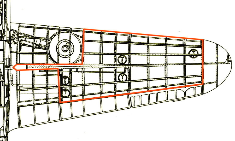 Красное со штриховкой это и есть несущий коробчатый лонжерон - экзоскилет.