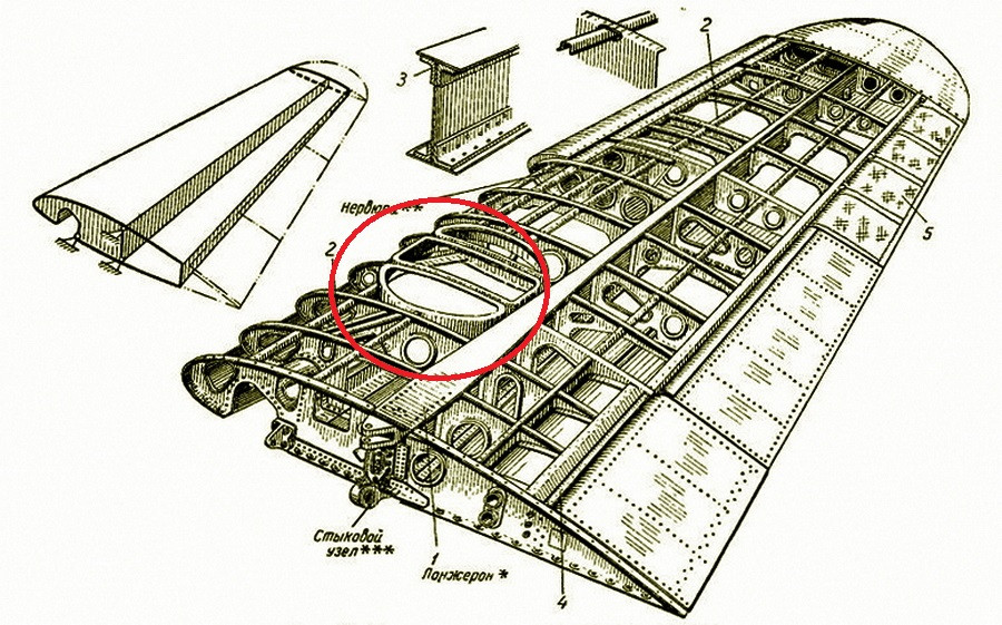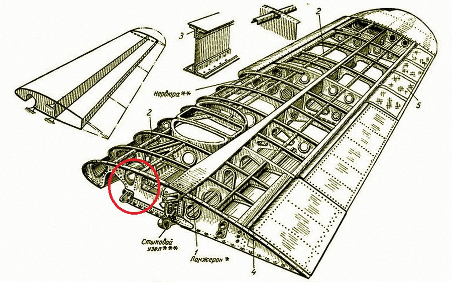 Разрушение несущей обшивки в этом месте приведет к нарушению геометрии или складыванию крыла.