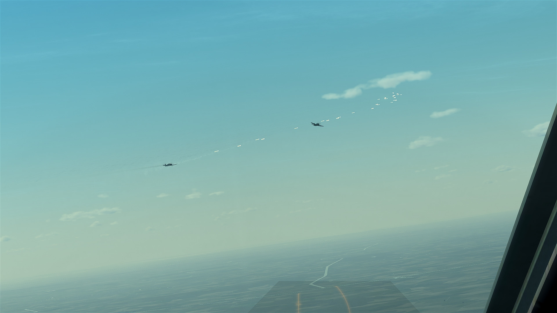Dornil Опубликовано: 11 июня 2020 Опубликовано: 11 июня 2020 (изменено) И вновь продолжается бой... Только что отлетал ещё одну миссию в карьере - Рейнланд, осень, перехват штурмовиков на 190А8. Сбил пять темпестов и два тандерболта. Патронов хватило бы ещё на парочку, но надоело это избиение младенцев. Решил понаблюдать за ботами. Пронаблюдал вот такую картину: Тандерболт летит по прямой, с лёгким набором и креном (на скрине видно), не маневрирует вообще, несмотря на то, что по нему стреляют. А стреляют по нему много! Вот эта вот фока сзади поливает его непрерывной очередью из всех стволов, не попадает ни разу (обратите внимание на дистанцию!), но гашетки не отпускает. Видно, как у фоки заканчиваются снаряды, но она продолжает палить из пулемётов. Потом заканчиваются и они, но никто из этой парочки этого, казалось бы, не замечает, и они в той же формации скрываются за горизонтом. Случай далеко не единичный, просто очень показательный. При этом разработчики нам сегодня в дневниках сообщили, что завершили совершенствование прицеливания... Уважаемый beneG, не могли бы Вы прокомментировать? Изменено 11 июня 2020 пользователем Dornil 1 5