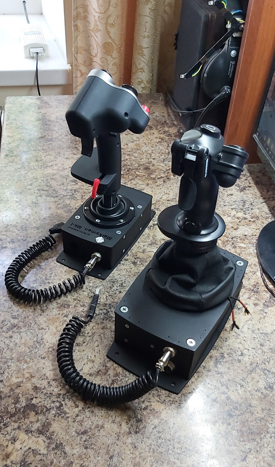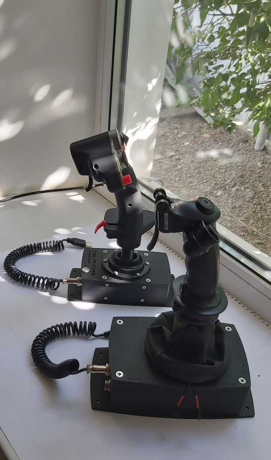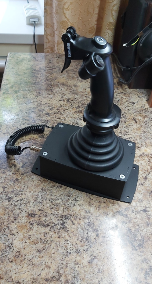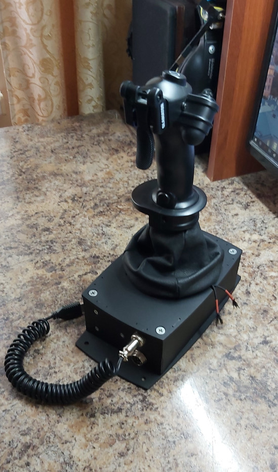 MYCYJIbMAHUH Опубликовано: 30 июня 2020 Опубликовано: 30 июня 2020 Контроллер- Arduino Pro Micro. Датчики 2шт-TLE 5010. Ход оси тангаж-25 грд( возможно уменьшить.) Ход оси крен-20 грд(возможно увеличить-уменьшить). Твиста нет,заблокирован.В ручке семь кнопок подключены через сдвиговый регистр.Есть место для ещё одной кнопки.Например тумблер назначенный на шифт(добавит ещё семь кнопок логических)-я не стал сверлить ручку,оставил возможность апгрейда для будущего обладателя. В корпусе два коннектора.Меньший питание.Большой 8 pin запаян на шильд для подключения трёхосевых педалей.(По Вашему желанию могу запаять провод с коннекторами на концах). Окрашен полимерным порошком"Муар".Весит база 2500гр. Резиновый пыльник могу поменять на пыльник ручной работы из кожзама.Установленный резиновый пыльник позволит из настольника сделать настульник. прошу 8000руб,доставку оплачивает покупатель.Отправлю тк.Боксбери. Скрытый текст 4