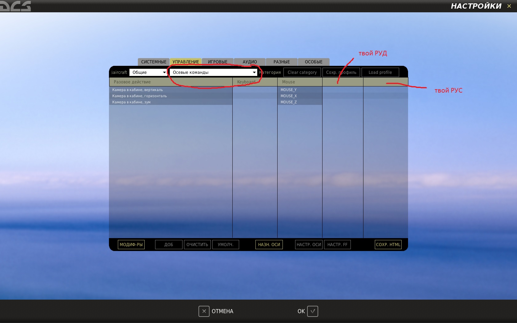 -=ATM=-MakiNToSH Опубликовано: 15 декабря 2014 Опубликовано: 15 декабря 2014 (изменено) Попробовать не получилось тк возникли вопросы: Как назначать оси и кнопки джоев ,в ручную ,выискивать по названию кнопки и оси? Что то у меня не вышло по нажатию и перемещению оси назначить ось и кнопки... Как фритрек включается. Какие настройки графы нельзя юзать из за прожорливости. Кто знает ответьте пжлст. 1)В управлении есть вкладка "Оси" там где выбор самолета напротив этой строчки раздел управления(вид, падлок, системы..вот там есть оси) У меня все отключено, но у тебя должны быть там джой и руд если есть, и педули. 2)Что бы включить фритрек нужно скачать данную папку и кинуть ее в корневую DCS (прямая ссылка, сразу качать начнет, вес 15кб, на тот случай если трафик) http://forums.eagle.ru/attachment.php?attachmentid=83981&d=1371926130 3)Что у меня влияет на фпс, дальность прорисовки, HDRI, сцены, сглаживание и разрешения в кабинах большое ставить не советую. А так подобрать не сложно. Изменено 15 декабря 2014 пользователем -=ATM=-MakiNToSH 1