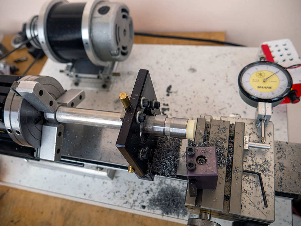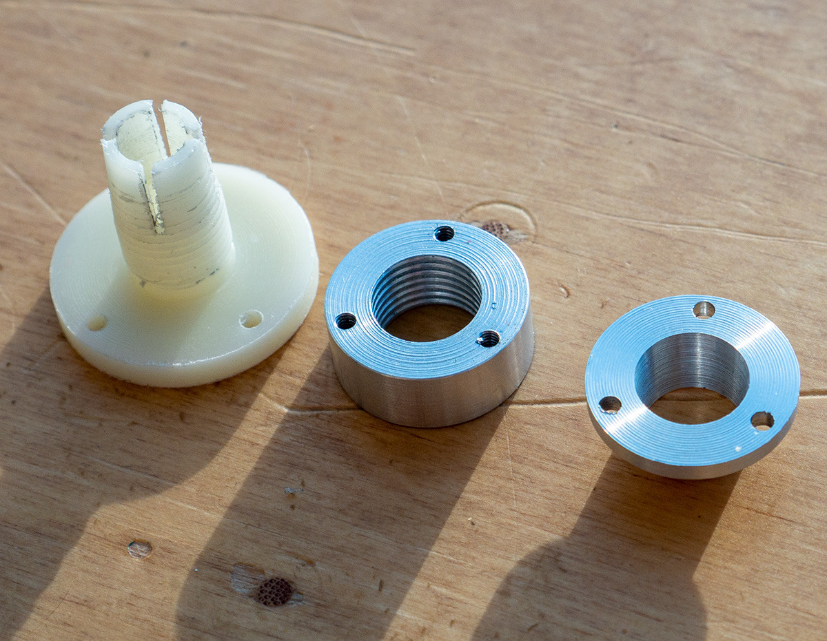 micro-flight Опубликовано: 18 августа 2021 Автор Опубликовано: 18 августа 2021 Решил попробовать пару технологических идей, не особо планируя начать изготовку, но не смог остановиться и начал делать новый РОШ. Скрытый текст Как и планировал, тот РОШ, который делал в начале, было устройство для проверки работоспособности и отладки идей, а потом планировал сделать такой же, но более качественный в плане проработки узлов. Первая проба - цанговый фрикцион получилась, теперь вторая технологическая проба - изготовление поворотной ручки. Поворотная ручка получилась. Общий вид узла Деталей, как ни странно, получилось немного для этого узла Дюралевая трубка со стальными подшипниками скольжения которые приклеил с ВК9, в трубку вклеен небольшой шток с окном для проводов. Провода проходят вместе со штекером 9 мм шириной То есть места более чем достаточно. Так как у меня и ручка несущая и проводка проходит в ней а не отдельной трубкой. На основной шток надеваются капролоновые втулки с ограничителями - ответная часть подшипников скольжения. Забавно, но на стальные кольца пошел шток сделанный неизвестным токарем для ручки CH, ручку купил, стальную деталь не знал куда девать, но когда нужной болванки не нашел, оказалось, что сталь очень неплохая. На всё это надевается внешняя трубка к которой прикручиваются капролоновые втулки на 6 винтом м2 и все это вставляется в вилку на которой будет вращаться рычаг. Ход вращения ручки ограничен пластиной. Планировал 90°, но сейчас реальный ход где-то между 85° и 90°, так как надо сточить острые кромки более тщательно, но тут плюс-минус пять или даже десять градусов, роли не играют. На эту пластину будет крепиться голова со всем содержимым. Ручка уже вышла тяжелее (сейчас 166 грамм всё что на фото) и в сборе тоже будет тяжелее текущей, значит следующий шаг это проверка эффективности нового фрикциона. Вращение ручки очень плавное, такое же как и на текущем РОШе, но лучше, так как жесткость и точность нового изготовления выше. Залипания нет, ручку можно начинать крутить очень плавно, буквально по микронам или очень быстро, в общем с любой требуемой скоростью. Смазка не требуется. 11 месячный цикл тестирования РОШ и поворотной ручки в частности, показал эффективность такой конструкции. 3
