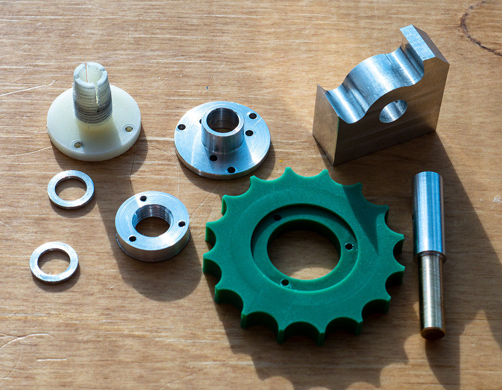 micro-flight Опубликовано: 21 августа 2021 Автор Опубликовано: 21 августа 2021 Вторая партия деталей подоспела Немного и достаточно просты. Ограничитель хода, он же базовая деталь, на которую всё крепится, ограничивает ход своей формой и весьма жестко, так как и сопряжение очень неплохое и деталь цельная. Ход ровно 20°, как на текущем варианте. В сборе выглядит так На фрикцион сделал зубчатое колесо, но надо как то сгладить углы, иначе не сильно удобно. И, похоже, одной рукой, вернее большим пальцем правой руки будет не удобно управлять им, так как требуются заметные усилия. Зато, если управлять левой рукой, а правой регулировать, то вполне. Ощущения от движения следующие: если ослабить фрикцион полностью - рычаг падает, если затягивать - то ход становится более тугим вплоть до фиксации. Но прямо чтобы сильно зафиксировалось, надо совсем уж туго затягивать. В промежутке от чуть-затянуто до затянуто-сильнее вероятно и будет основная регулировка в процессе управления. Если двигать рычаг и вращать ручку, то движение плавное и немного вязкое, сильно похожее на то, как если бы была нанесена демпферная смазка. Надо начать движение, оно начинается очень плавно и незаметно, если начинать резко, то двигается быстро - но сглажено, без рывков. Вес уже перевалил за 200 гр. Текущий РОШ весь в сборе весит 500 гр, так что у меня еще есть 300 грамм на остальное, чтобы был такой же по весу. Основная проблема будет создание новой головы. Нужно больше кнопок и сделать не её не тяжелой, что не так просто. 3