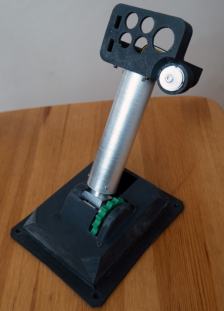 micro-flight Опубликовано: 29 августа 2021 Автор Опубликовано: 29 августа 2021 Собрал весь механизм оси основного рычага. Всё в сборе и полностью функциональное. Удалось вписаться ровно в те же самые размеры, что и у текущего настольного РОШа. Размер корпуса, ручка, всё точно такое же. Только на качественно другом уровне. Так как много делал разных вариантов и вообще широко эксприментировал, удалось довести узлы до очень хорошего уровня в плане жесткости-прочности и, соответственно точности. Натяжителя больше не будет. Очень большая практика показала, что натяжитель дело хорошее. Но, во первых сильно усложняет конструкцию. Во вторых, как ни странно, не дает нужного натяжения. Если перетягивать, то может просто задавить мелкие подшипники (такие там усилия) и вытягивает все узлы, потом требуется периодическая калибровка. В отличии от джойстика, где изначально попросту не смог вставить и работает эта схема вообще без доп калибровки и каких-либо изменений. Собственно говоря, это выяснил еще раньше, на этапе изысканий, когда такие шкивы работали и работали, но думал, что с натяжителем будет лучше. Натяжение, кстати, и в этом случае немаленькое. С незатянутым фрикционом можно вращать ведомую ось и она будет поднимать всю ручку. И это на гладких шкивах то. И еще добавляется тактильное ощущение. Одно дело просто двигать ручку, другое ощущение если затягивать фрикцион, и совсем другое если еще есть ременная передача. Нагрузки на ведомой оси то нет, но подшипники нагружены и есть ощущение что прокручивается какой то механизм. 2