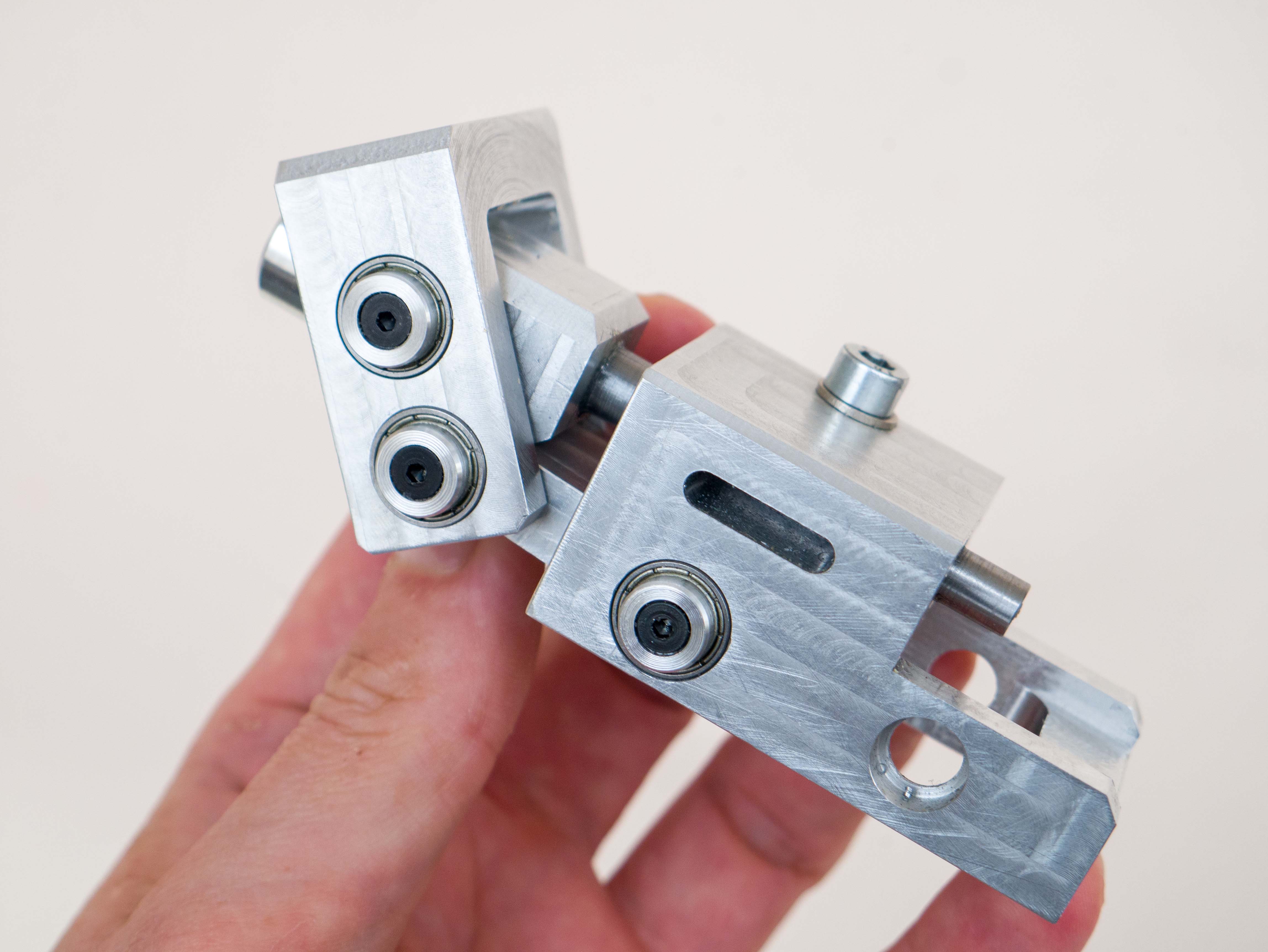 micro-flight Опубликовано: 14 ноября 2022 Автор Опубликовано: 14 ноября 2022 Механика пришла к такому виду. Базовая пластина и вся основная механика на ней. Для разгрузки основной части предусмотрел поддержку в виде подшипников, как раз между которыми и основной частью будет возникать наибольшая нагрузка при давлении рукой. По ощущениям оказалось очень эффективной штучкой. Теперь надо думать как сделать матрицу для корпуса из подручных средств и опробовать еще одну вещицу для механики. 1