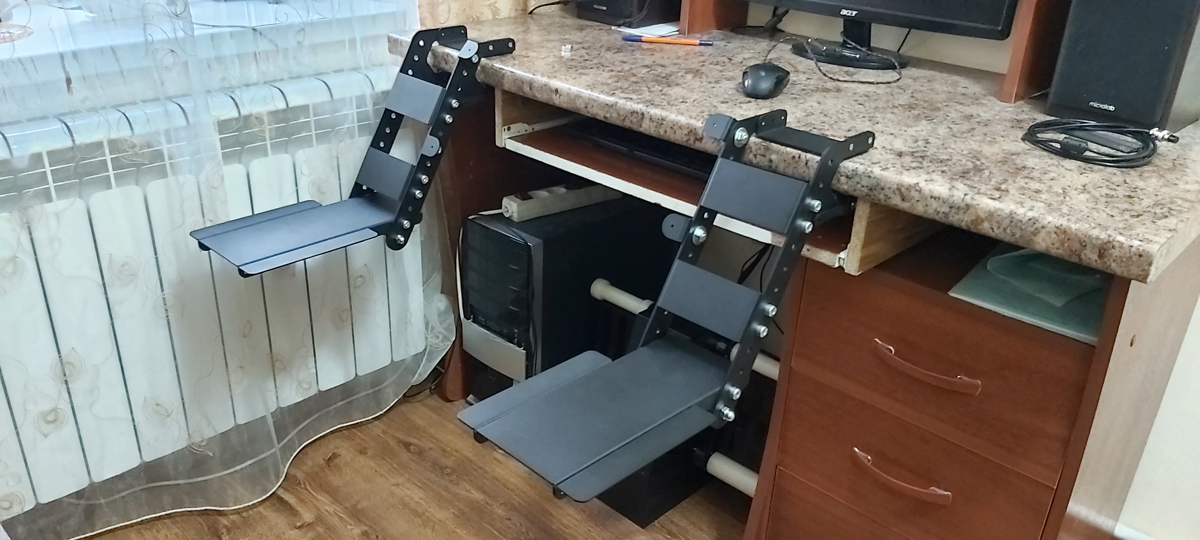 MYCYJIbMAHUH Опубликовано: 25 октября 2020 Автор Опубликовано: 25 октября 2020 (изменено) 30 минут назад, 72AG_Storm сказал: Один не отдадите? Можно размеры от стола и по высоте? Вирпиловский руд можно закрепить будет? Полочка ниже столешницы -220мм. Передняя часть полки от столешницы-150мм. Полезная длина полки -245мм. Ширина полки с уголками-190мм.(без уголков-120мм). Полочки делал под руд и рус Cougar. На офисном стуле поднятом от пола на 400мм (сам стол высотой 770мм)удобно юзать дефолтный рус кота и с адаптером увеличивающим высоту рус на 10 см (делал под себя. Угол наклона кронштейна 30грд.Полку можно поднять.Имеются четыре уголка позволяющие закрепить между кронштейнами площадочку под клавиатуру или под квадрант. Или так. Изменено 25 октября 2020 пользователем MYCYJIbMAHUH 1