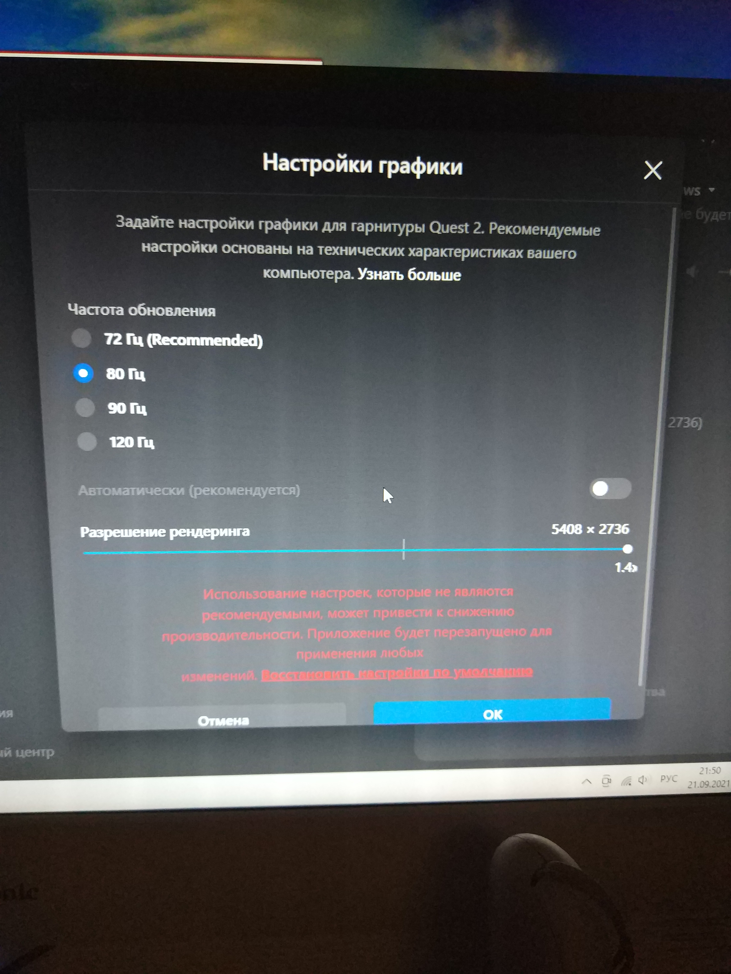 MaxPyro Опубликовано: 18 сентября 2021 Опубликовано: 18 сентября 2021 (изменено) Начались первые проблемы. Oculus Link перестал работать. Выдает сообщение "Oculus Link keeps stopping". Тест USB-соединения проходит успешно на 2.2Gb. Обновлений нет, ни в шлеме, ни Oculus App. Началось просто так, никаких настроек не менял, вчера включил, думал полетать немного, а тут такая фигня. Кто-нибудь сталкивался с такой проблемой? Неактуально. Сам починил. Encode reolution было выставлено в 4080. Раньше работало, после обновления перестало. Выставил 3664 Изменено 18 сентября 2021 пользователем MaxPyro