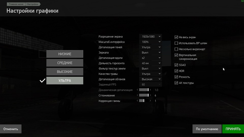 72AG_kalter Опубликовано: 10 октября 2018 Опубликовано: 10 октября 2018 (изменено) 55 минут назад, schnaps сказал: На днях поставил ASUS GF GTX1050TI-4G-GAMING вместо бывшей 670-й. Настройки оставил те же, лишь выставил тени на "ультра" вместо "высокие". ФПС в разных сценах колеблется от 30 до 60. Скрыть содержимое Рекомендую выключить полноэкранный режим, SSAO и HDR. Последний мылит картинку. Дальность отрисовки смело ставь 70 Х4. Если на московской карте при полете над лесом на бреющем появятся микрофризы, убавь настройки до "высоких" и сглаживание - до двух. И оцени фпс Изменено 10 октября 2018 пользователем 72AG_kalter