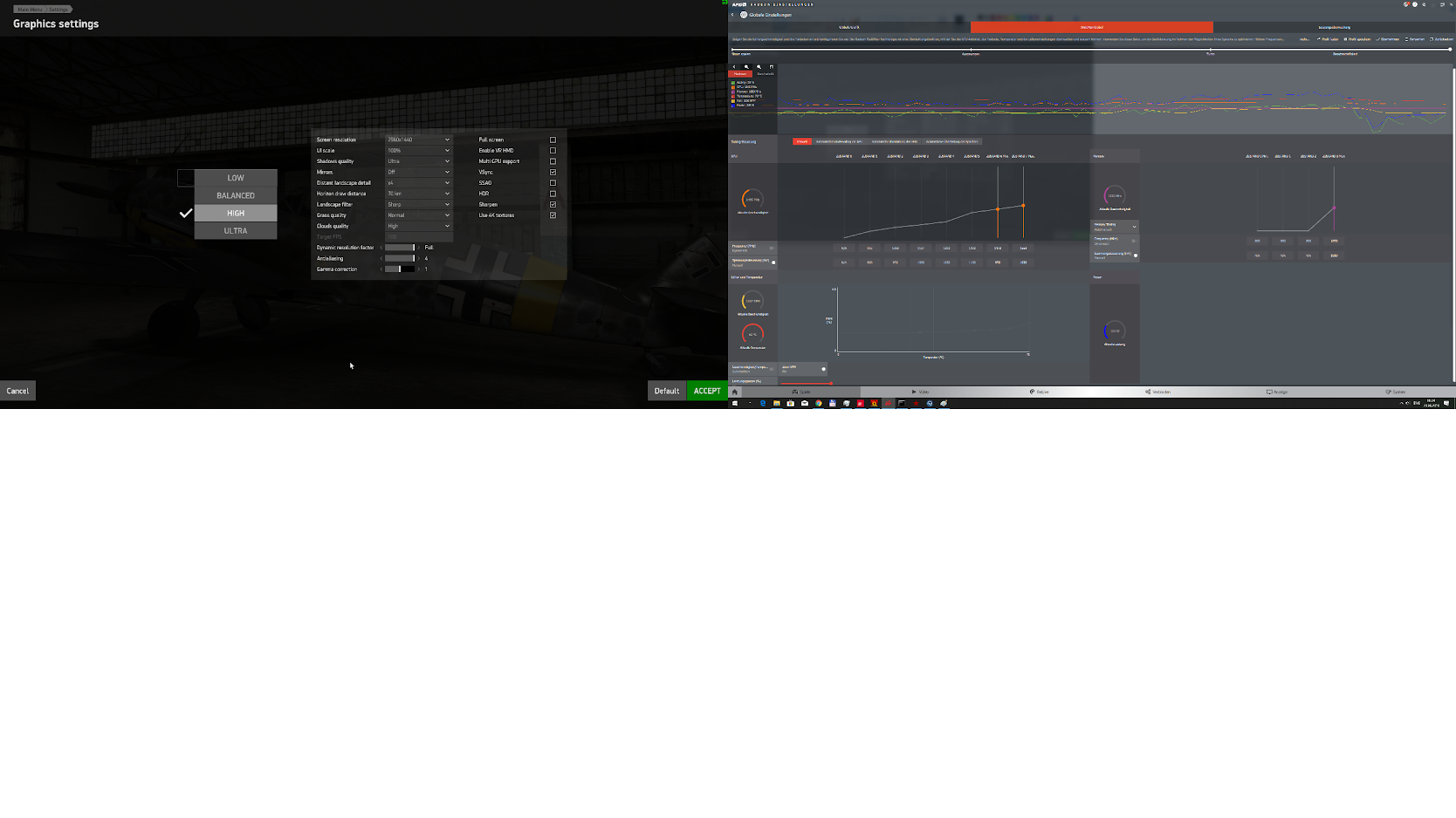 Norz Опубликовано: 28 августа 2019 Опубликовано: 28 августа 2019 (изменено) Результаты тестирования Radeon RX 5700 1. На частоте монитора, отличающейся от 60 Гц Wattman показывает "пустой" экран.2. На частоте монитора 60 Герц "бублик" (FurMark) показывает 60fps, на 70Гц - 34fps. 3- Игра ил2 штурмовик, в меню и в игре в районе 30 fps (Vega стабильно в меню 60 и в игре 70). При частоте монитора 60 Гц можно увидеть, что частоты памяти и ГПУ заметно меньше чем даже половина от максимальных. В Wattman можно (если я правильно понял) установить минимальную частоту (поставил 1200МГц), но видно, что частота все равно скачет в игре 400..800..1000. Неиграбельно вообще. Одним словом, карта может и хорошая, но в настоящий момент непригодна к использованию вообще. Результаты тестирования Radeon Vega 64 Sapphire Nitro Ил2 практически гарантированно играбелен при разрешении 2560*1440, настройки детализации "высокие", сглаживание отключено, стабильно 70 кадров онлайн (вертикальная синхронизация включена), тени ультра. По шуму по прежнему есть вопросы, но заметно лучше, чем референсная турбина. Скрытый текст Скрытый текст Изменено 28 августа 2019 пользователем Norz