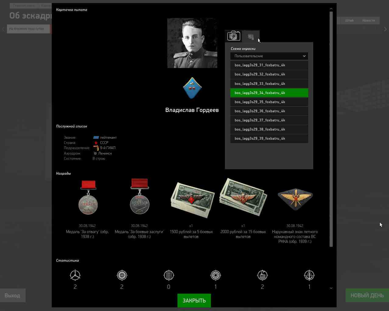 Более полная статистика игрока/эскадрильи