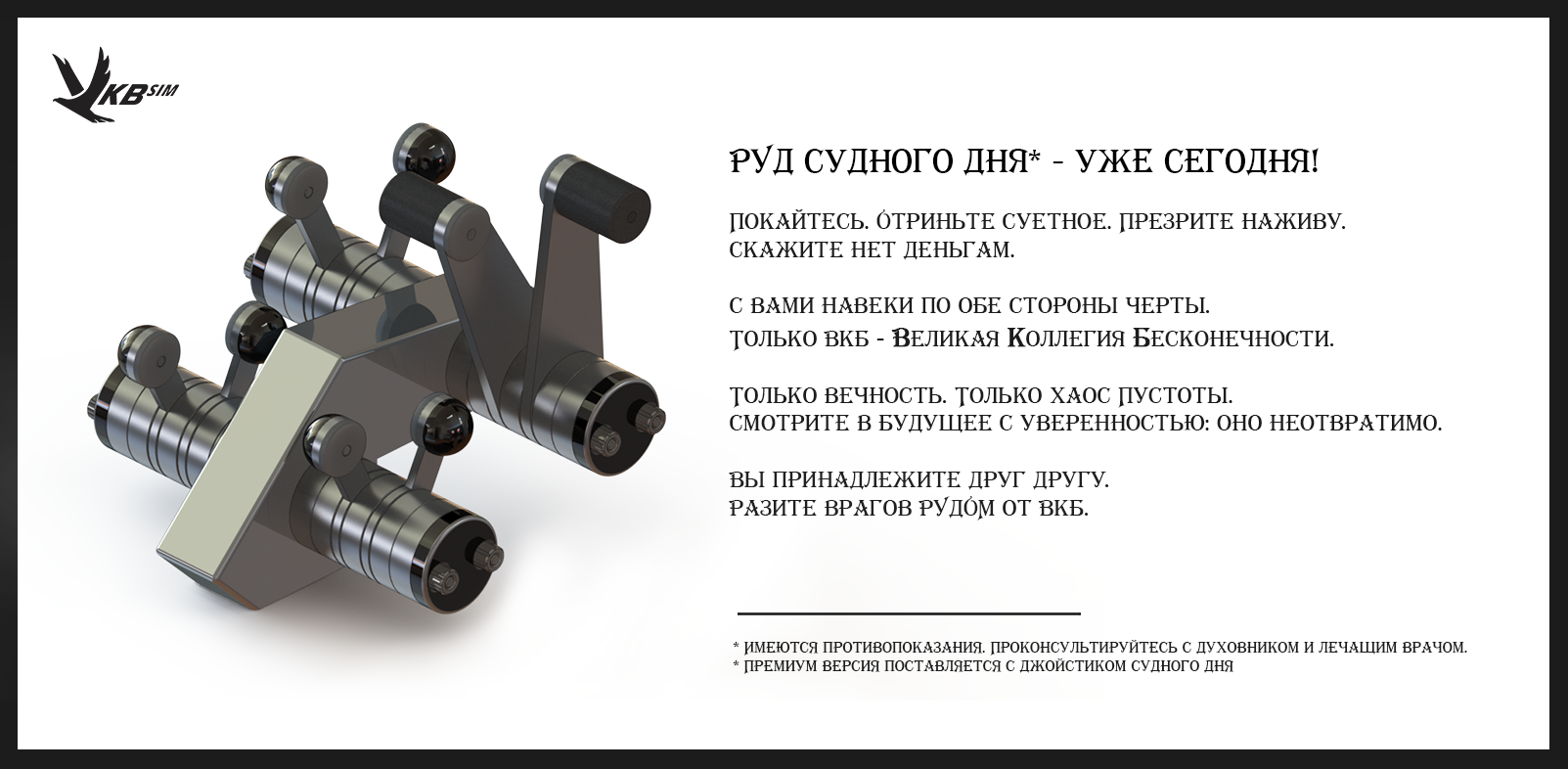 uiv Опубликовано: 26 января 2021 Автор Опубликовано: 26 января 2021 52 минуты назад, ReviZorro сказал: Я уважаю Илью и весь коллектив VKB, но не могу удержать в себе Скрыть содержимое Инженеры VKB вдохновляются техническими идеями традиционным китайским способом: На что только не пойдешь, чтобы сделать хороший джойстик. 1 час назад, MYCYJIbMAHUH сказал: Новая мода-это хорошо.Не могу понять-это руд ли блок управления двигателем и механизацией? Руд-имеет ручку для кисти.На ручке кнопки.Некоторые кнопки очень важные потому что их приходиться юзать в бою.И если кнопки под рукой расположены удобно,твой скилл растёт,так как нет лишних движений,все кнопки на местах под пальцами. Улыбнитесь, вас снимает скрытая камера