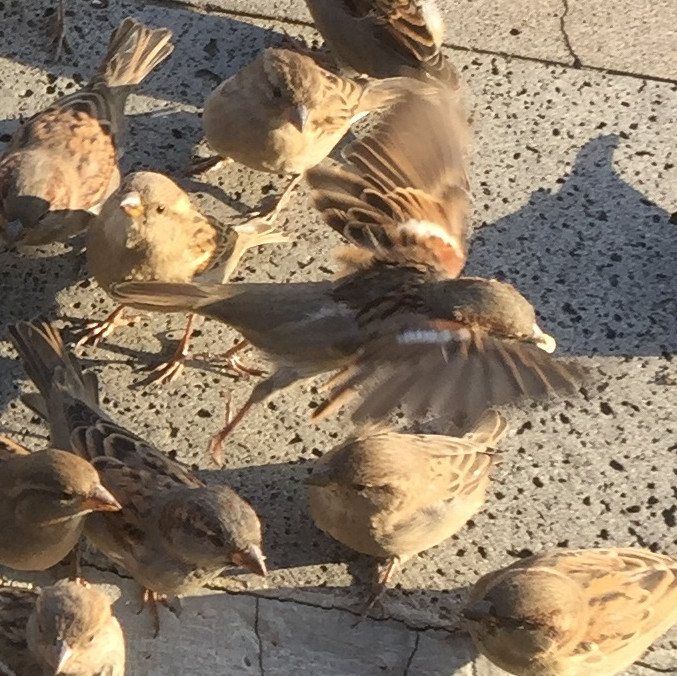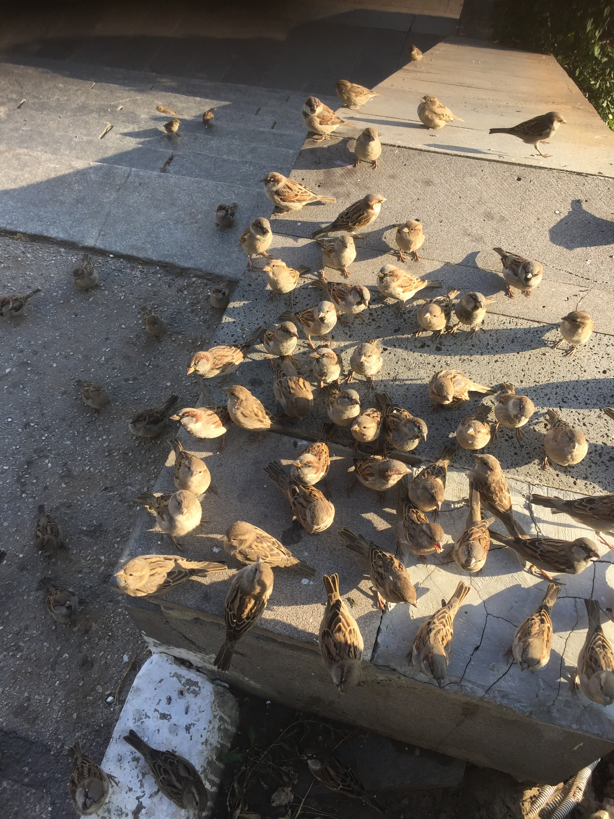 -=StF=-Take-oFF Опубликовано: 28 сентября 2019 Опубликовано: 28 сентября 2019 стадо городских воробьев Популяция, обитающая в людном месте. Человека не боятся, но осторожничают. Выделяют из толпы людей с едой, внимательно рассматривают на предмет получения пищи, и бегают за ними небольшой группой, подбирают крошки. Вареную кукурузу хватают на лету, еще в воздухе. Можно кормить с рук.