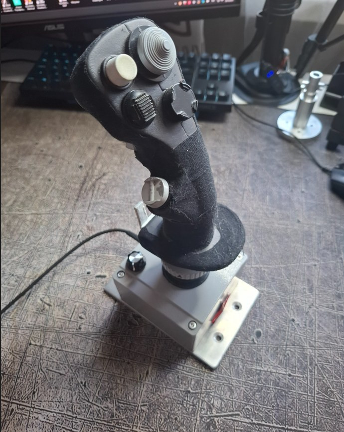Adzoku Опубликовано: 28 сентября Опубликовано: 28 сентября Мой концепт тензо базы подходит к логическому завершению. Принципиальная задумка по проекту Коробочка размером 120х90х56 В перспективе планирую коробочку 100х100х60 В конструктиве решил использовать дорогие датчики, в среднем один датчик с али 2 тыс руб Полномостовой сенсор с работой в обе стороны. по сути в конструкции можно использовать и 2 таких, но что то захотелось 4шт. Работа по осям прекрасная, все ровненько как струна Для базы под заказ изготовлен переходник с фланцем, на который все и прикрутил Как показала практика, резиновые антивибрационные проставки для получения предзагруза оказались не особо рабочими, с ними джой работает как буд то бы на пружине, что не очень сказывается на управлении при дозаправке Ф16. На данный момент думаю а нужен ли этот предзагруз как таковой, то что ручка не двигается, это ни как не влияет на точность управления и комфорт использования, если кто знает как это реализовано в Ф16, по небольшому движению ручки, был бы благодарен за инфу. Окончательный вид получился такой. Налетал часов 100 уже на данном концепте и определил для себя уже первый образец. Все эти крутилки на базе лишние для меня оказались, кнопки даже не стал вставлять. Единственная крутилка что будет, это потенциометр для увеличения - уменьшения тяжести нагрузки по осям, по сути можно регулировать от полу кг, до 20кг, но я к примеру не могу давить на ручку 20кг постоянно, комфортно для себя определил что 5-7кг достаточно. В середине октября когда придут все комплектующие, думаю предоставлю уже окончательный вариант базы. Из наворотов будет оставлен потенциометр загрузки и добавлены 3 метода оповещения пользователя когда ручка отклоняется в свои максимальные значения. Что бы не свернуть и чего не сломать, будет вибрировать моторчик, загораться светодиод и издавать звук пищалка. По первым 2 точно, по пищалке не знаю, скорее всего сделаю ее через скрытый потенциометр, под отвертку что бы регулировать звук. По цене себестоимость базы выходит 18-20 тыс руб. Дороговато конечно, но все же это дешевле реалсимулятор и тианханг. Думаю снизить себестоимость процентов на 30 освоив метод наклейки тензорезисторов. Пока как то так 3