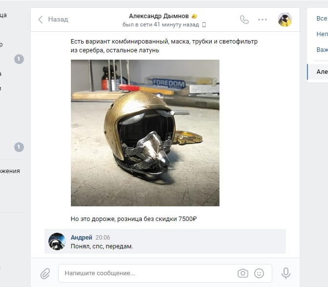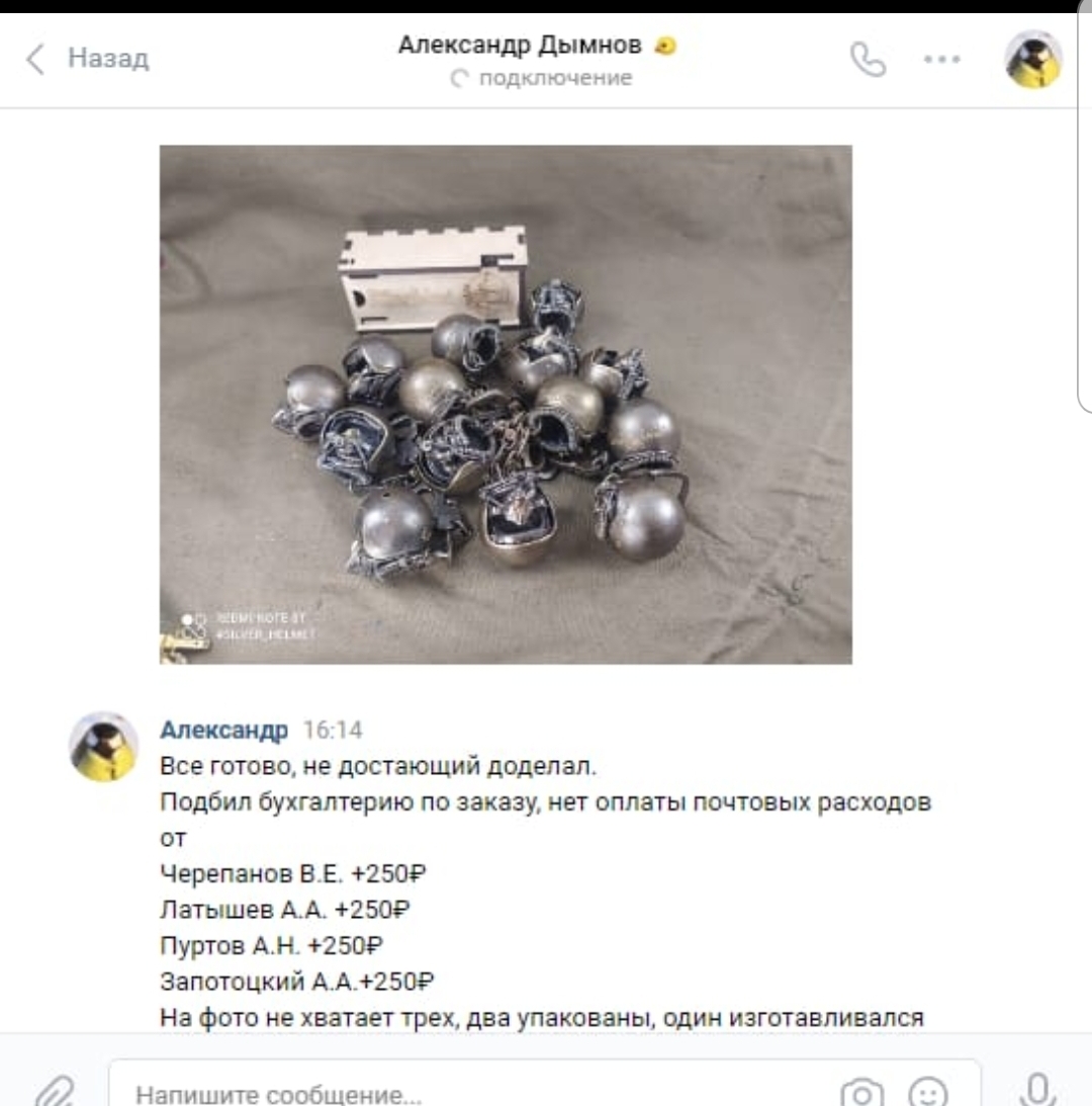 Link44 Опубликовано: 21 апреля 2021 Опубликовано: 21 апреля 2021 (изменено) Коллеги, привет. На просторах интернетов наткнулись на вот такие брелоки ручной работы. Латунь, копия ЗШ-7 с маской КМ-34, функционал видно на вложениях. Стоимость этой красоты 4 тысячи рублей. При заказе 10 или более цена уже 3 тысячи. Мы с моим товарищем, пилотом Су-27 Андреем, которого многие знают по форуму авсима, ед и реаа под ником 21PFM, поспрошав по всем знакомым решили организовать что-то вроде совместной закупки этих брелоков, ведь если можно со скидкой, то чего бы и нет если да. Меня также знают на вышеозначенных ресурсах, множество людей покупало у меня авиажелезо и может за меня поручиться. Я предлагаю людям, которые захотят приобрести такой брелок за 3к отписать в этой теме. Необходимо набрать в общей сложности 10 желающих. Будет больше- здорово. Ниже ссылки на странички мастерской которая изготавливает брелоки, фотки для тех, кому лень переходить по ссылке, и скрины переписки Андрея с изготовителем. Пока нам заявлено что цвет только темный(чернёная латунь), и без звезд на шлемах( это делалось эксклюзивно для стрижей). Серебро нас не интересует. Просьба не обсуждать в теме способы лучшего вложения этих денег, и вообще воздержаться от советов в этом плане. Данный пост не является рекламой этой мастерской, либо чего то еще. Мы с Андреем не имеем своего финансового интереса и не пытаемся на этом заработать. Также, прошу обратить внимание, что у них там немеряно всяких занятных брелоков, нас в данной теме интересует только ЗШ. Доклад окончил, благодарю за внимание. ? Страничка мастерской номер раз https://vk.com/silver_helmet Номер два https://www.instagram.com/silver_helmet/ Изменено 21 апреля 2021 пользователем Link44 1 1