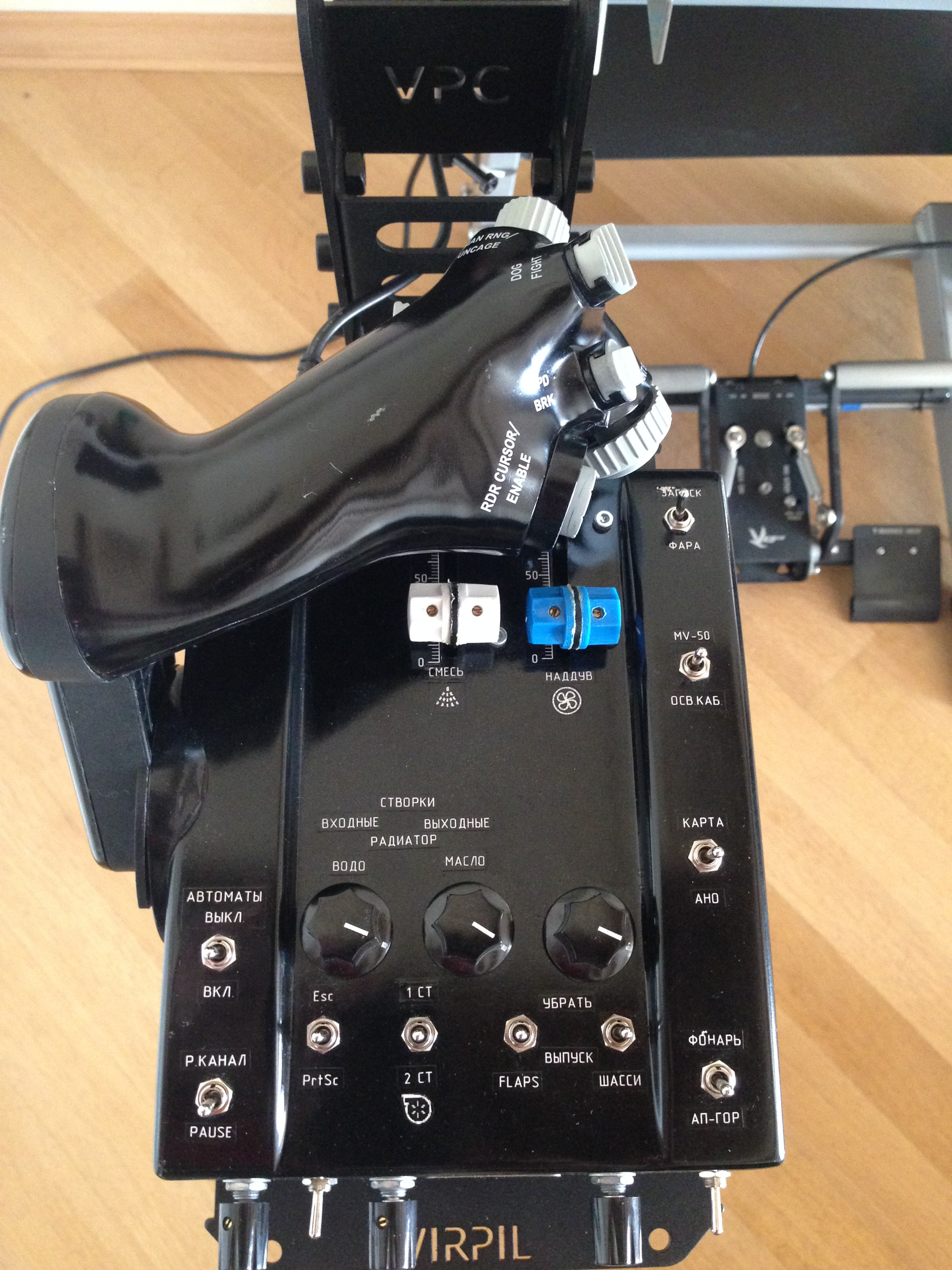 =19GvFAB=Vasila Опубликовано: 22 июня 2021 Опубликовано: 22 июня 2021 Руд cougar от Vumpel18, - 10000 грн., (300 евро), крепление от Virpil - 1600 грн., (50 евро). Работает как отдельное устройство, подключение USB, soft MMJOY2. Пользовался 3-и года, без нареканий, потёртости на ручке, тумблер на АНО болтается но работает, других замечаний нет. В комплекте дополнительно родной прижимной рычаг с прижимной пластмассовой вставкой. Крепление (Desk Mount Virpil длинный) с площадкой под данный руд, состояние 5. Скрытый текст