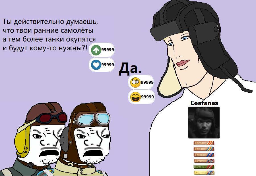 =FA=CATFISH Опубликовано: 28 июня 2021 Опубликовано: 28 июня 2021 1 минуту назад, Gimpel сказал: вообще не интересный геймплей. что делать синим? эмиль есть. фридрих есть. иар? чайка его не догонит. даже бомбер не догонит. гоняться за машинками и поливать их из шкас-ов? Дайте уже этому обладателю ордена ленина персональный МИГ29. Но только в оффлайне. Мож успокоится? 1