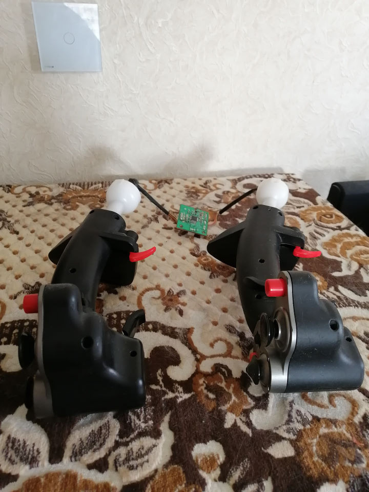 unhappytroll Опубликовано: 21 июля 2021 Опубликовано: 21 июля 2021 (изменено) Начну, пожалуй, распродавать накопившееся барахло. Пересылка, как обычно, за счёт покупателя, или самовывоз из Щёлково, МО, или с понедельника в Москве. Причина продажи - лежит и занимает место, давно не используется, "не приккотилось"(С). 1. Для самодельщиков: корпус от Кобры три штуки, с колёсиком (резистор на месте). Шурупы от механики есть, самой механики внутри нет. Плита тяжёлая. По 300 р. за штуку. Скрытый текст 2. Две ручки от Кобры. Одна - от первой версии, к ней даже контроллер прилип (датчики когда-то продал уже), одна - от второй. Средней потрёпанности, с первой частично стёрт софттач, липким был. Кнопки на момент снятия работали, но были проблемы с тактильным ощущением клика по одному из курков. Твист на месте. По 200 р. за штуку. Скрытый текст 3. Т.16000. Без коробки, без вставок под левую руку - купил таким. Подсветка не отключена, все оси и кнопки живые. Слегка болтается поддержка кисти. Надписи на кнопках мои, так было легче ориентироваться при назначении. Хочу 1500 р. Скрытый текст 4. CH Fighterstick USB + CH Throttle Pro USB. Все кнопки живы. Оси пошумливают и плывут (резисторы же), у РУДа так же стандартная болезнь этой модели - министик не всегда возвращается в центр. 3000 р. за оба или по 1500 в разбивку. Скрытый текст 5. Модифицированный под РОШ Saitek AV8R-01. Все кнопки живы, один из тумблеров слегка залипает, оси РУДов слегка шумят, колпачок кнопки разобщения имеет тенденцию слетать, если его отжать. На нижней панели несколько дополнительных отверстий, шток ручки распилен пополам - это я пытался его к креслу присобачить и удлинить шток, но по итогу эксплуатации вернул в прежний вид и поставил на стол. Причина продажи - на столе места нет, придётся жить с РУД, пока не сделаю раму для кресла нормальную. Хочу 1000 р. Скрытый текст Изменено 21 июля 2021 пользователем unhappytroll