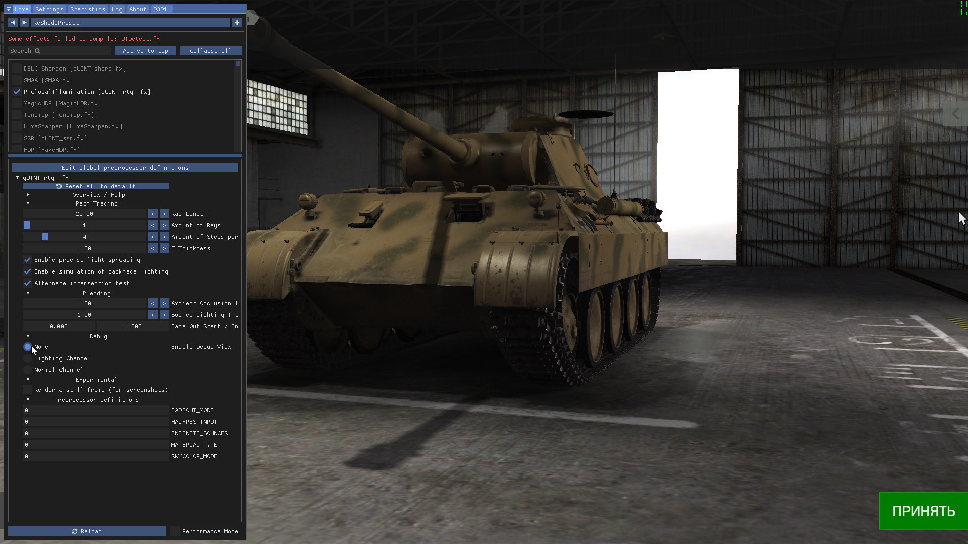 Valentin_K Опубликовано: 16 декабря 2021 Автор Опубликовано: 16 декабря 2021 Решейд от Паскаля, гуглите, не помню сколько но там, вроде что-то около 1 - 5 долларов. Можно проще, я вам в личку скину "ознакомительную версию". Настройки такие. 1. Устанавливаете официальный решейд в папку с ехе-шником. Появилась новая папка reshade-shaders, закидываете туда "шейдеры от Паскаля". 2. Заходите в игру, нажимаете клавишу Home, соглашаетесь - программа создает файл настроек.3. Заходите в Settings и в поле (указано стрелкой) биндите свою клавишу, для включения и отключения эффектов на лету. Скрытый текст 4. Во вкладке Home находите шейдер ретрейсинга (RTGlobal и активируете его. В поле ниже его настройки, которые мне кажутся неплохими, но тут дело вкуса). 5. Если шейдер не заработал и видимых изменений нет, то включаем поле "отладки", оно в случае неработоспособности будет серым. 6. Заходим во вкладку D3D11 и активируем/деактивируем пункты (угадываем), пока изображение не появится (дефолтное игровое сглаживание должно быть обязательно выключено). Затенение появилось (иногда бывает и в перевёрнутой форме, это лечится). 7. Настраиваете в поле ниже ползунками то затенение которое вам интересно и ест меньше fps. 8. Включаете сглаживание и другие интересные на ваш взгляд шейдеры. 9. Игра затенение с внешней камеры и затенение из кабины просчитывает "неодинаково", поэтому нужно для активации затенения в кокпите подбирать свою галку во вкладке D3D11 1