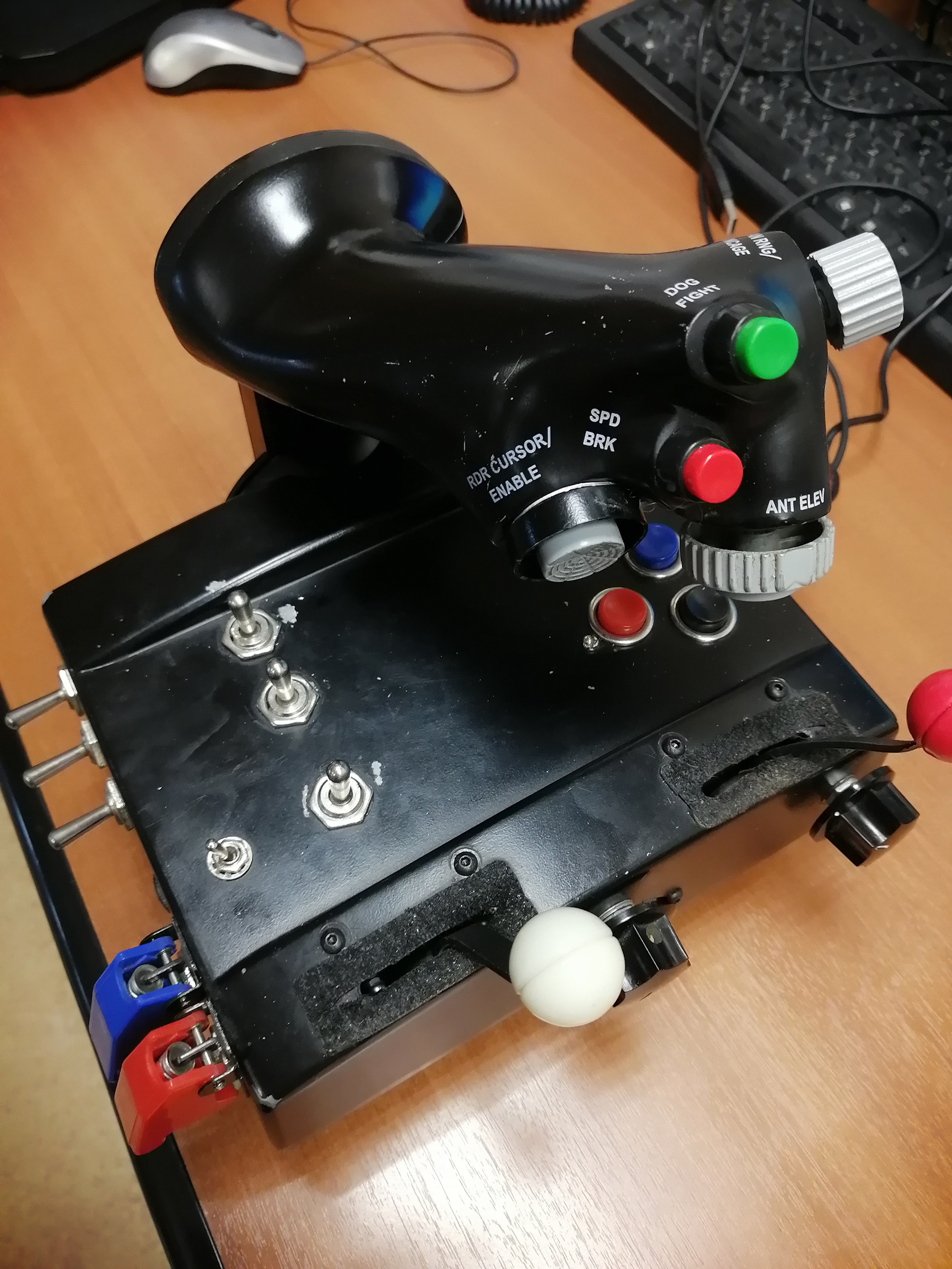 ROSS_TaTaPuH Опубликовано: 29 августа 2021 Опубликовано: 29 августа 2021 РУД Cougar цена 8000руб. Контроллер GVL224 njoy16, три датчика Магрез от GVL224 на двух доп осях и основной ручке руд. На ручке ось основная датчик tle5010 + контроллер mmjoy2. Использую как ось зума. Верхняя ось на ручке потенциометр без тактовой кнопки. На базе три тумблера (on)-off-(on) без фиксации, пять тумблеров с торца с фиксацией on-off, две оси потенциометр на 10кОм. В ил2 тумблера применял с дополнительной прогой Mapper. Вид на фото, есть потертости. 1