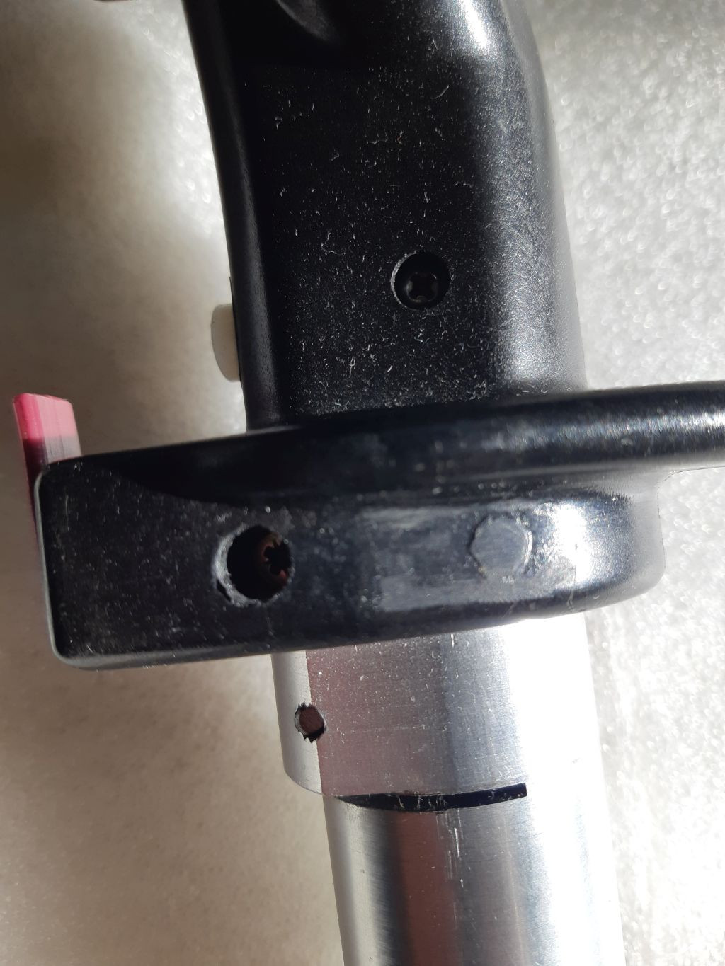 probel Опубликовано: 7 сентября 2021 Опубликовано: 7 сентября 2021 Ручка пластмассовая Б/У (реставрирована), бывший владелец просверлил отверстие под шуруп, это отверстие заклеено пластмассой и дихлоретаном, также не было кнопки под мизинец поставил самодельную из капролона. Зажим основания ручки изготовлен из Д16Т, трубка нержавейка (длина 19 см), общая длина от основания ручки и до нижнего торца трубы 24 см. В собранном виде как на фото ручка не люфтит, не скрипит. Цена 3 т.р. Скрытый текст 5